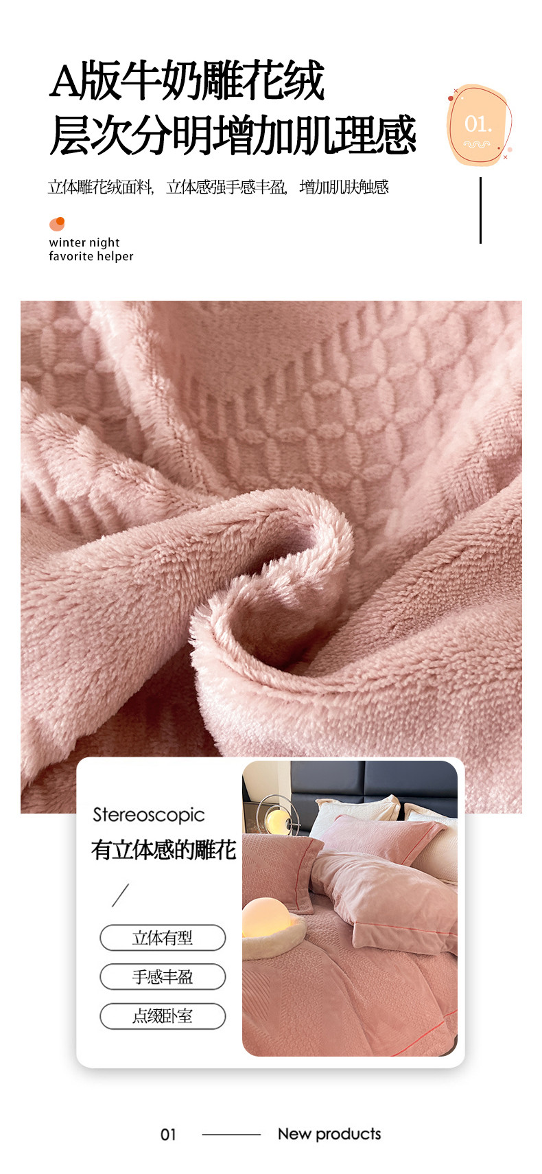 (总)美伦美焕 2025新款加厚雕花绒床盖款四件套-浅叶,浅叶-粉玉,浅叶-卡其,浅叶-绅士灰,浅叶-蔚蓝,浅叶-胭脂红