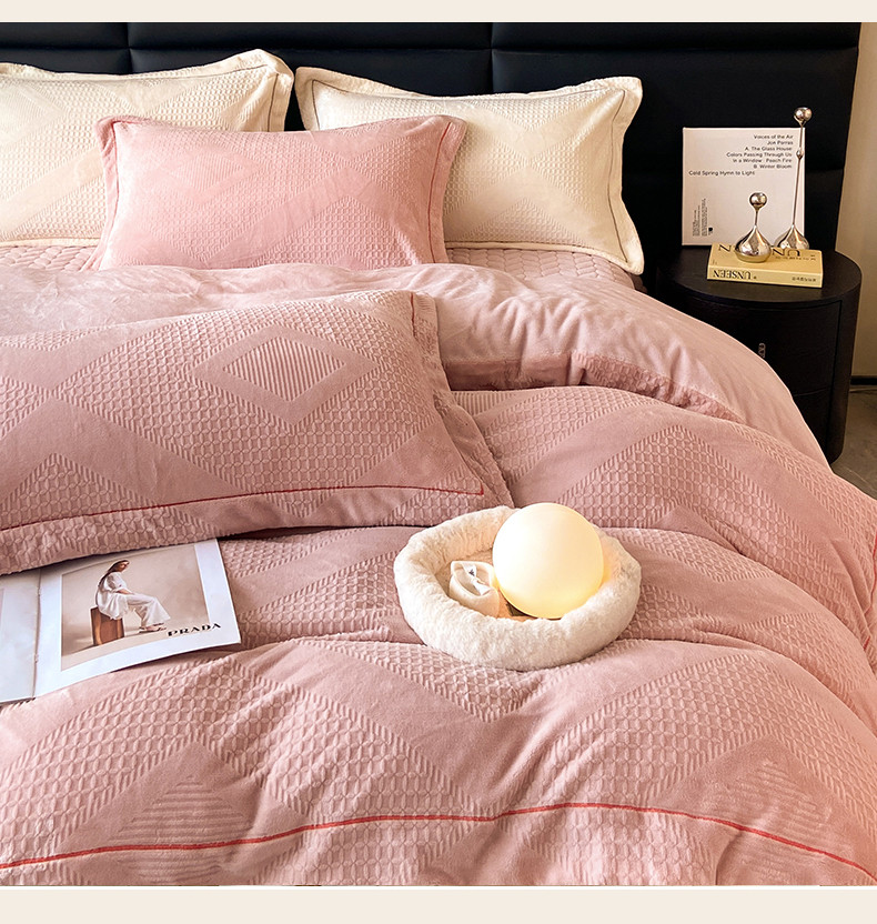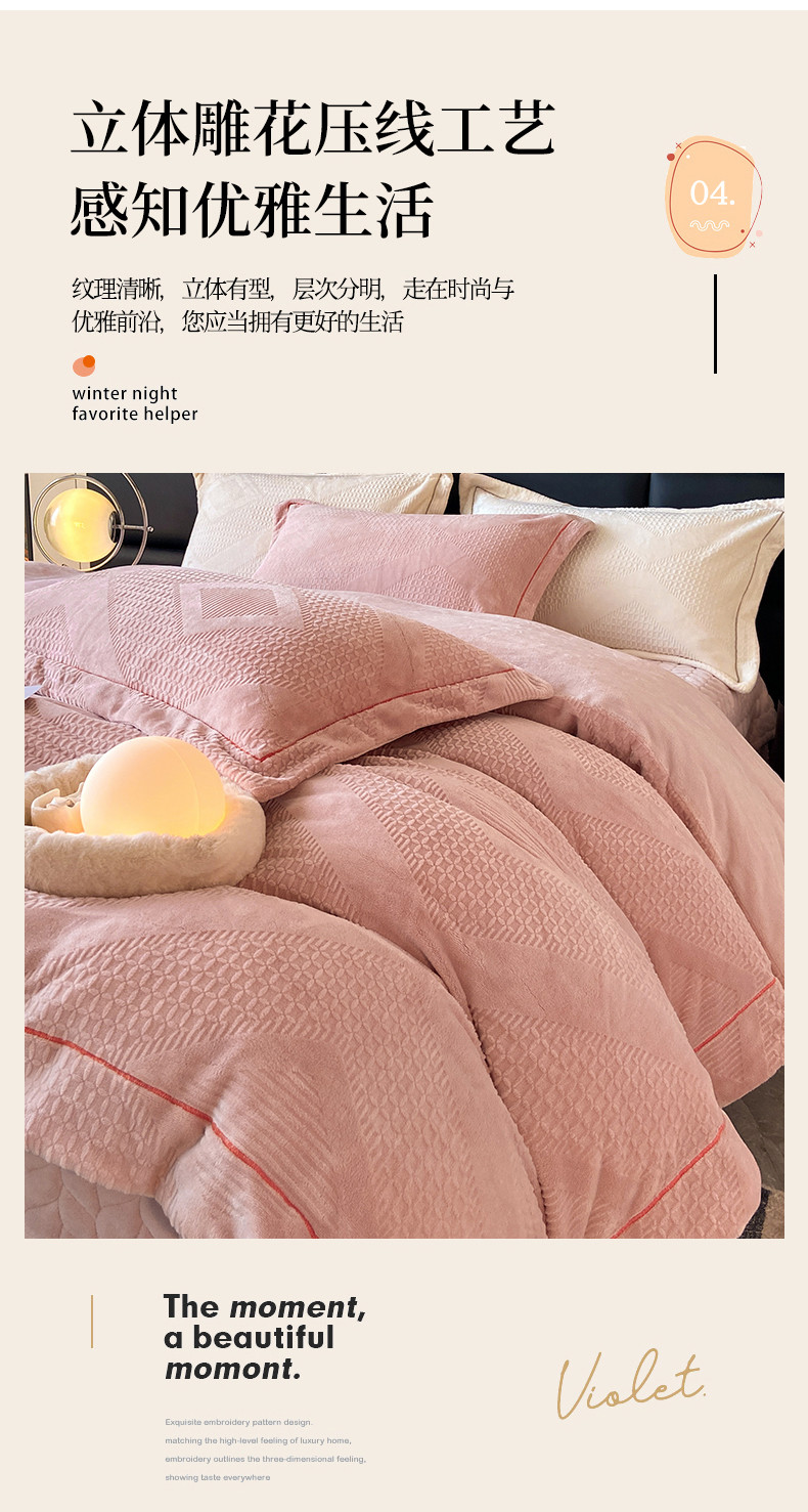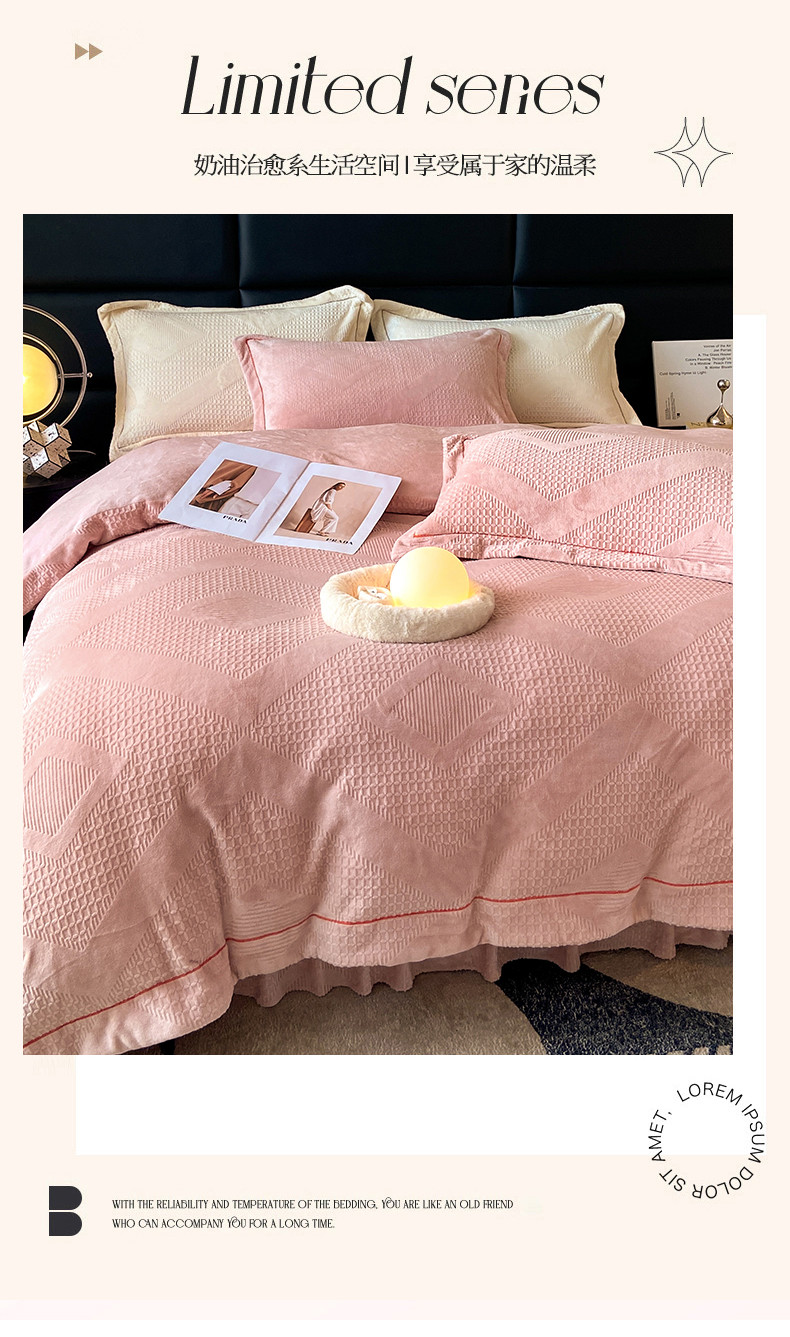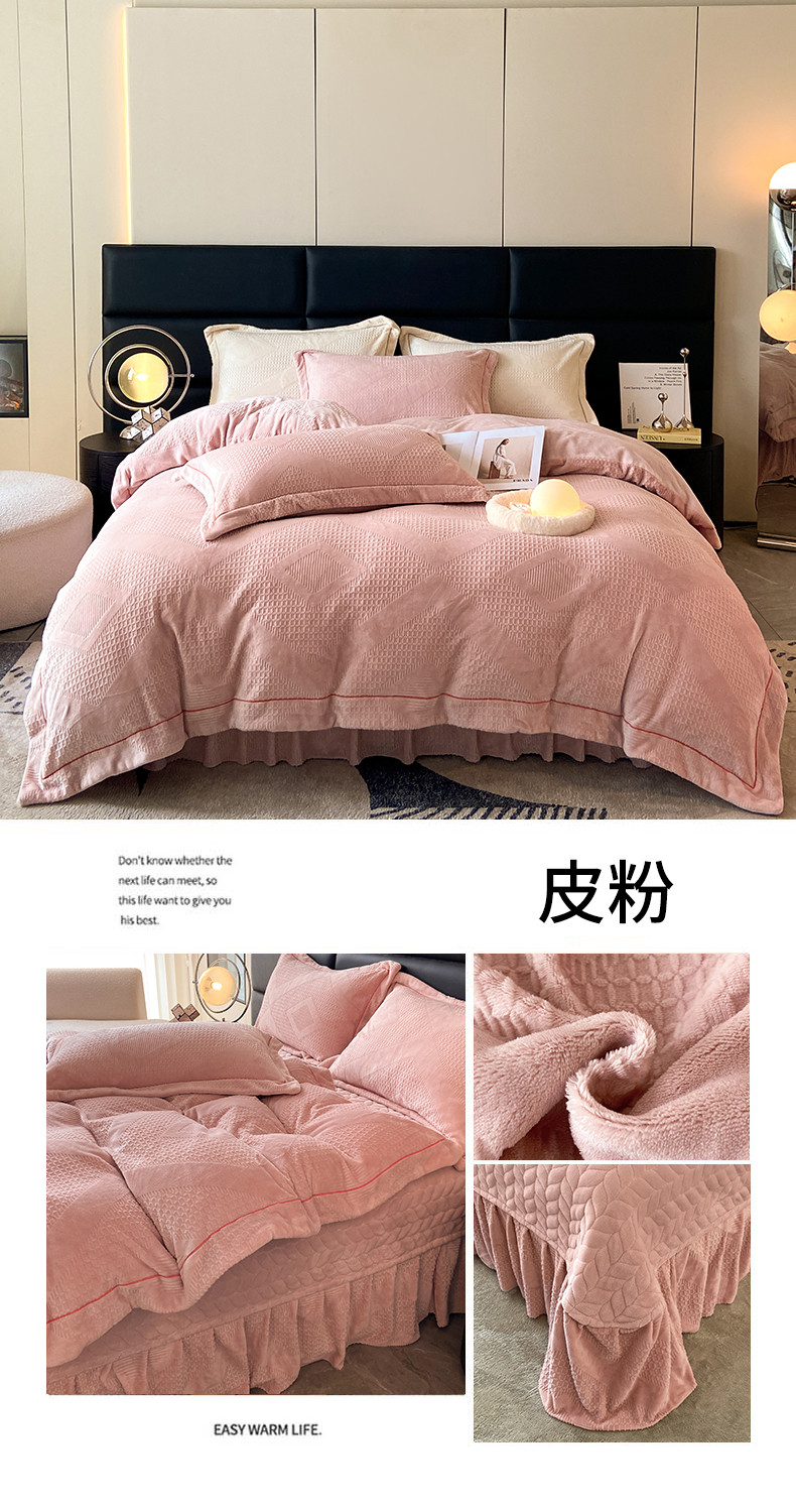 美伦美焕2023新款纯色立体雕花牛奶绒床盖四件套床裙款式 皮粉