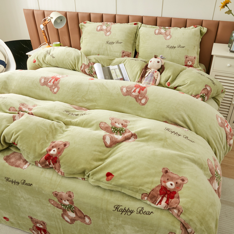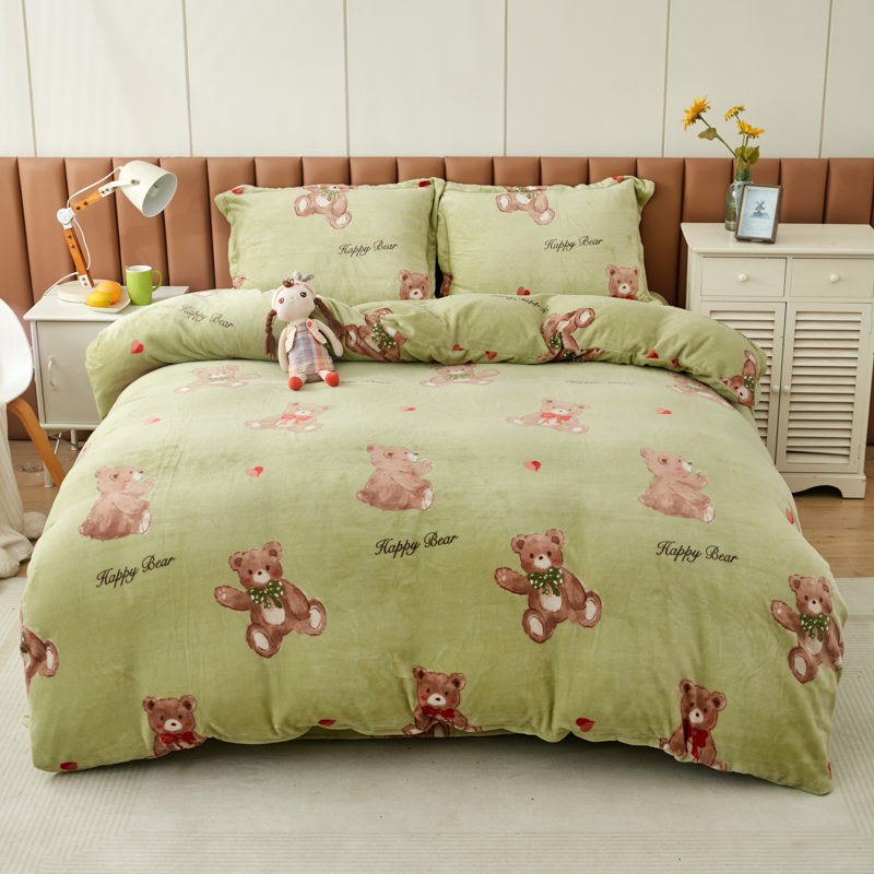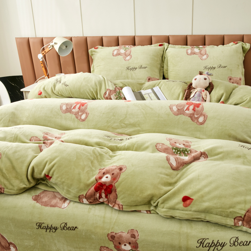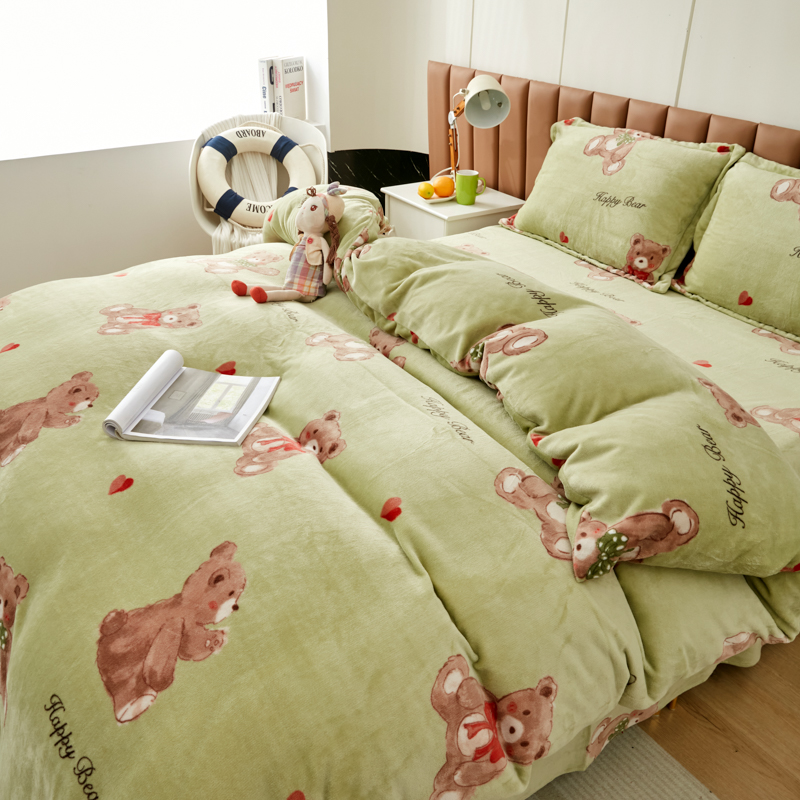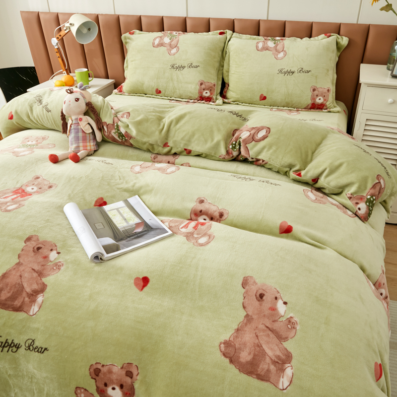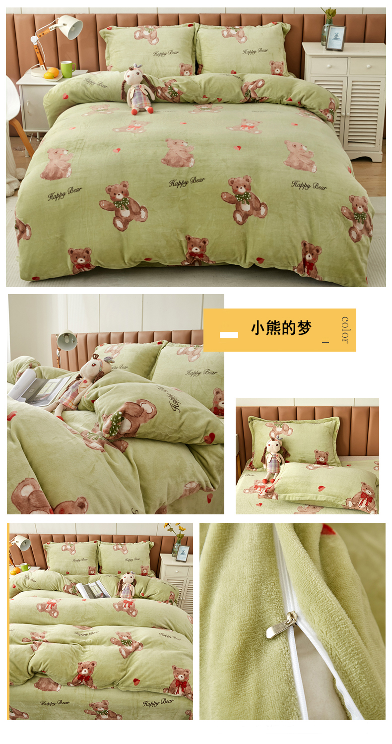 • 91家纺网 家纺一手货源 找家纺 乐居坊 2023新款高克重牛奶绒印花保暖四件套 小熊的梦