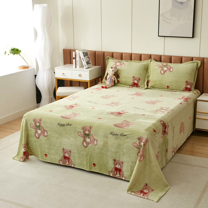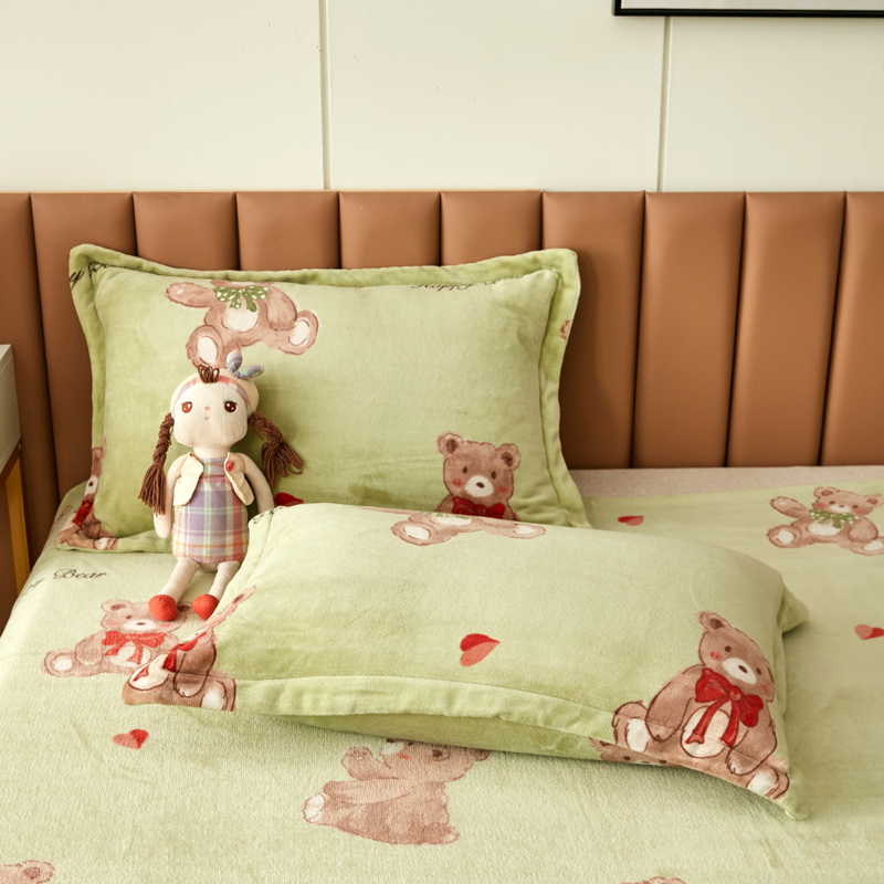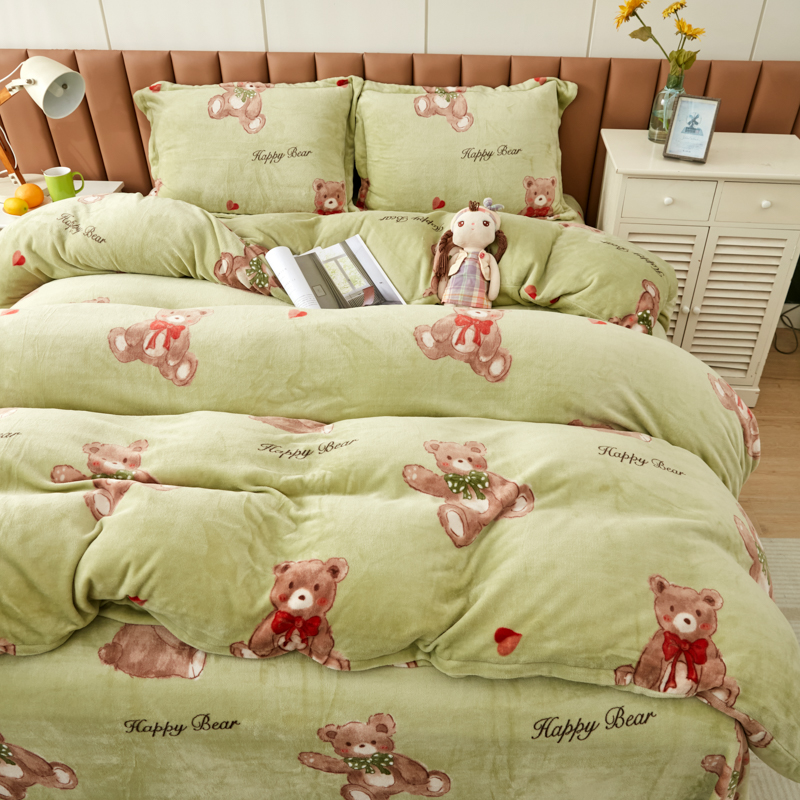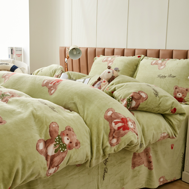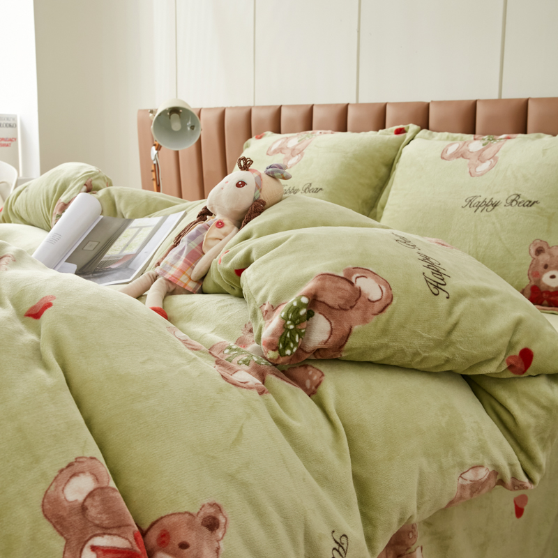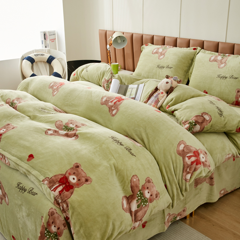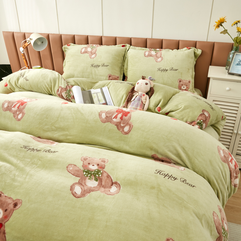 • 91家纺网 家纺一手货源 找家纺 乐居坊 2023新款高克重牛奶绒印花保暖四件套 小熊的梦