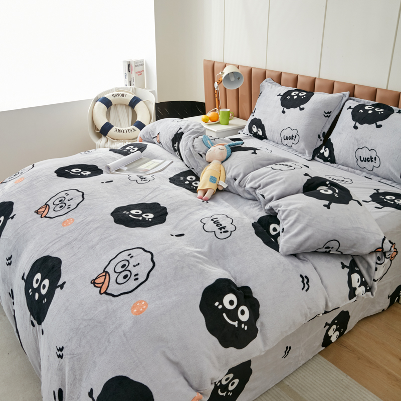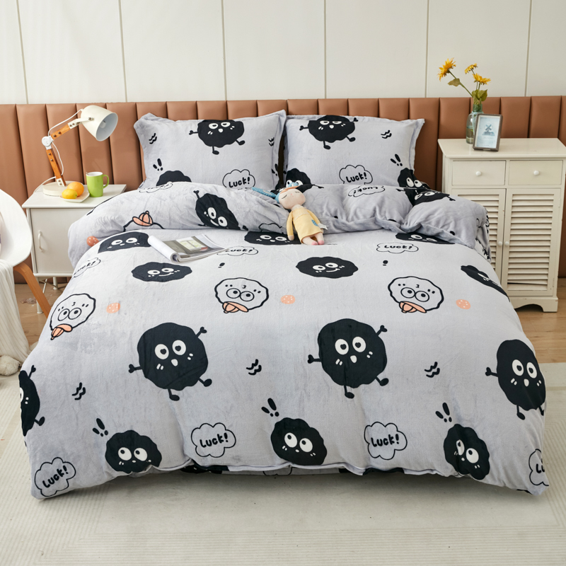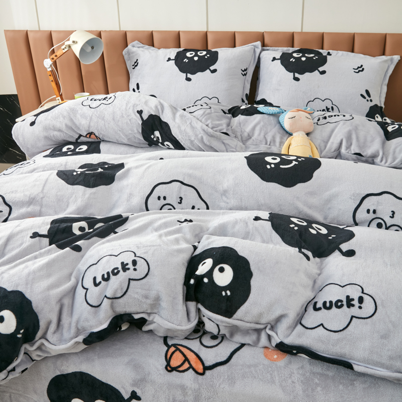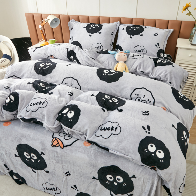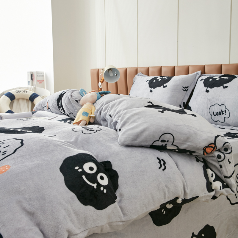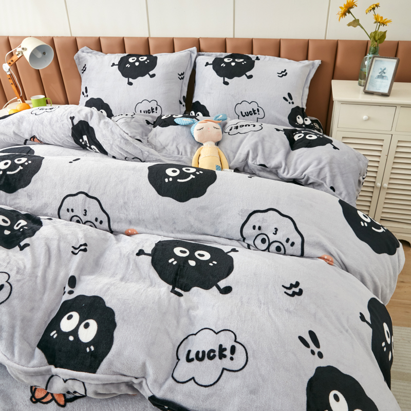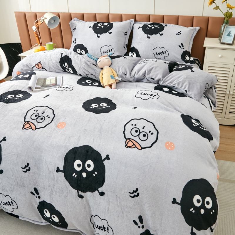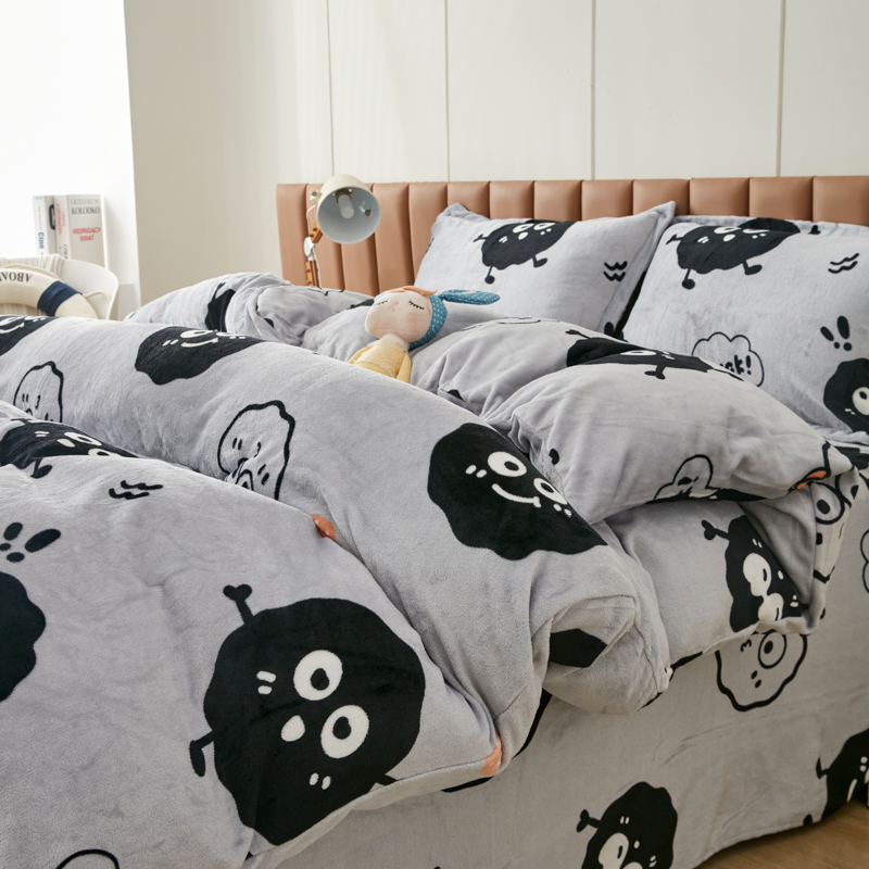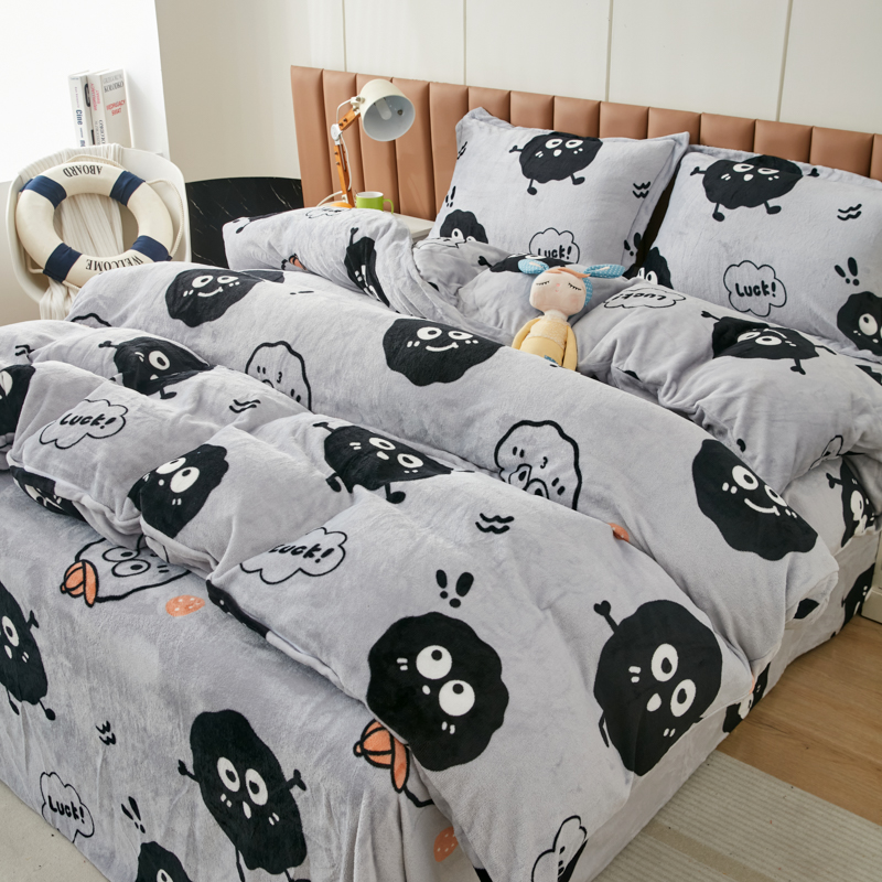 乐居坊 2023新款高克重牛奶绒印花保暖四件套 煤球精灵