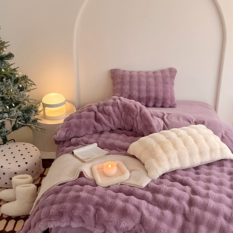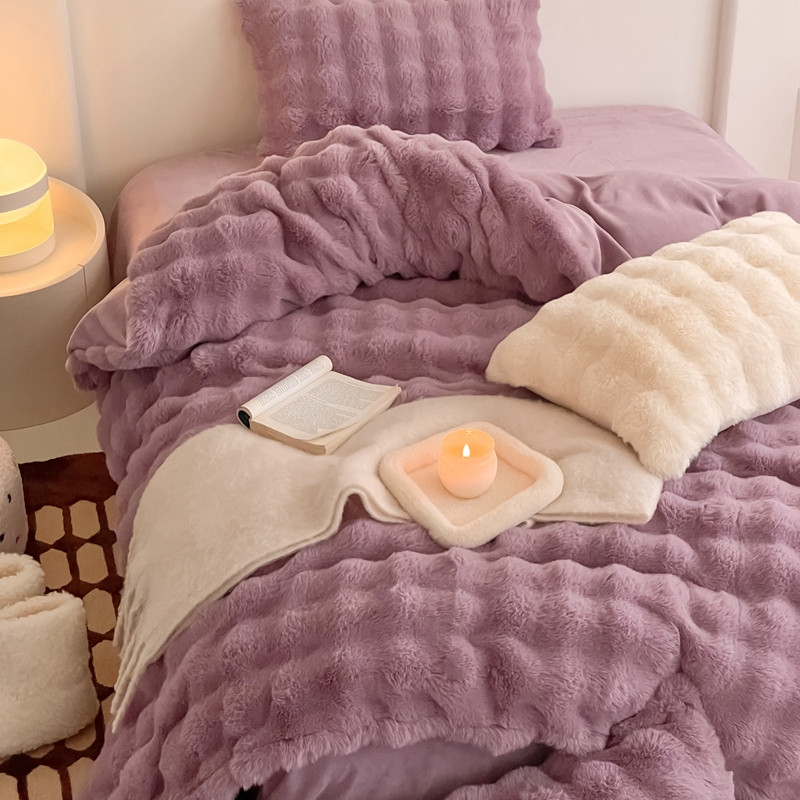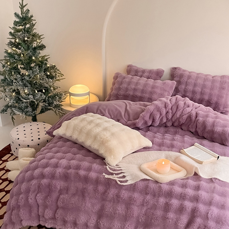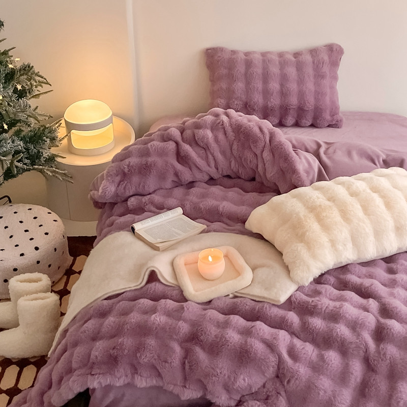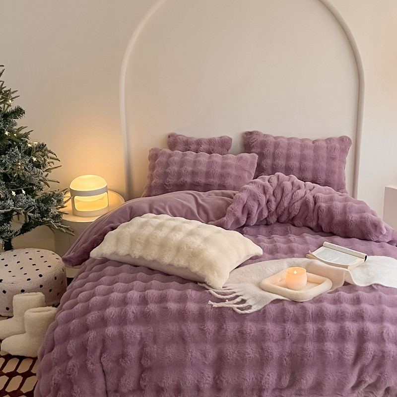 潘朵拉 2023新款爆款兔毛大泡泡四件套 大泡泡紫