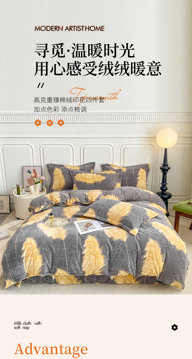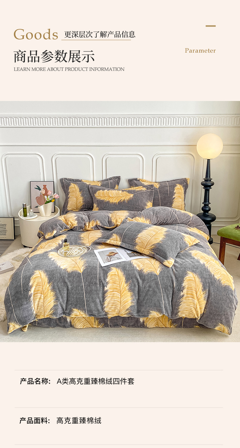 当前位置: 91家纺网 > 商品网购 > 床品套件 > 四件套 > 牛奶绒四件套 > 518家纺 2025新款A类高克重臻棉绒四件套 羽叶之冠
