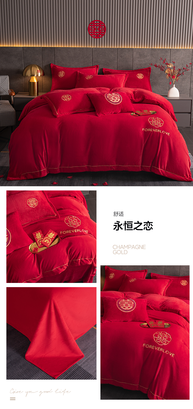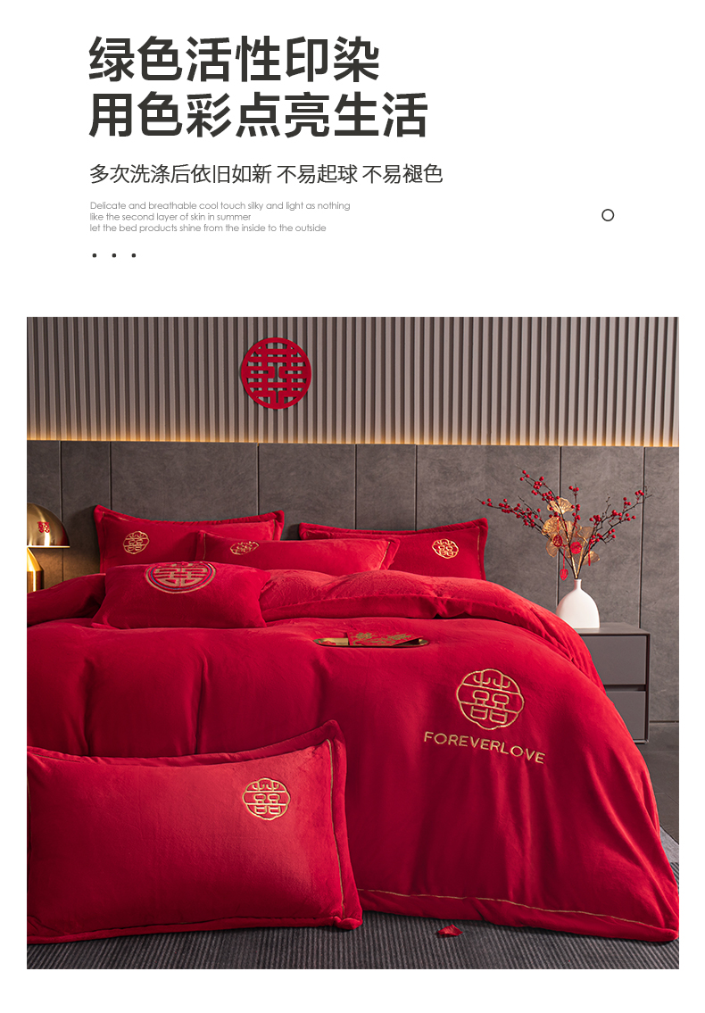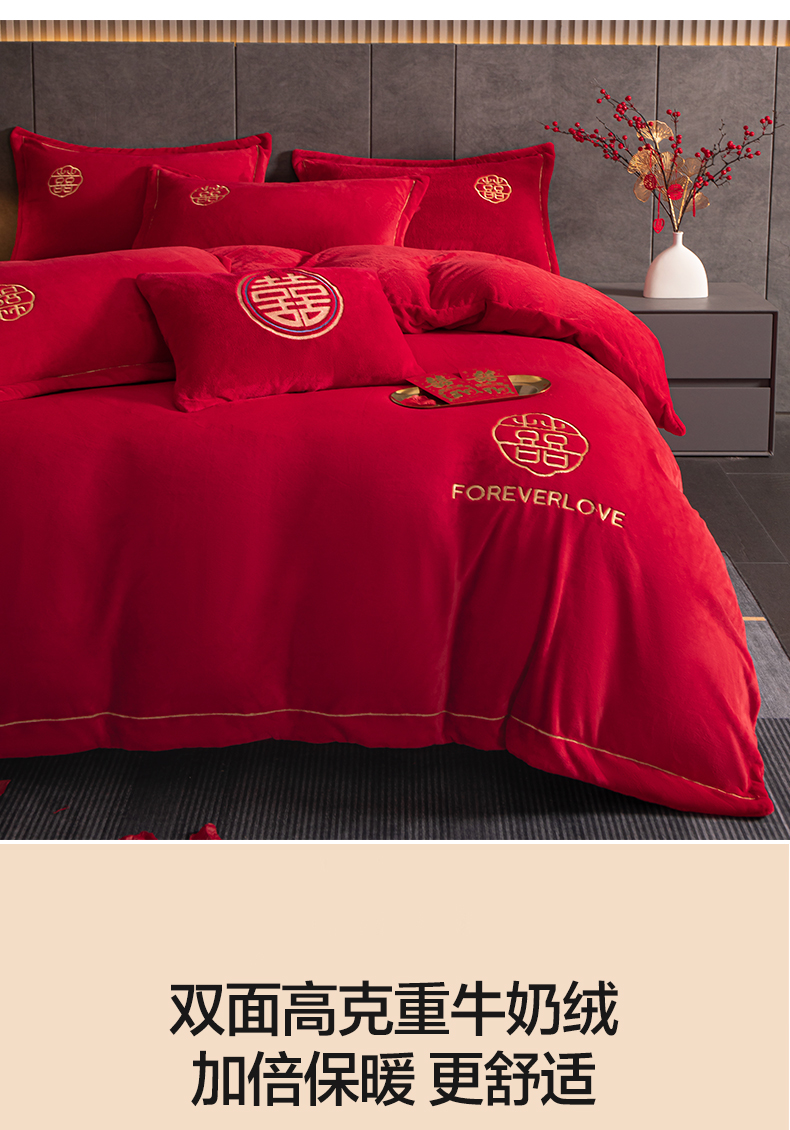 商品名称:花愿 2025新款婚庆牛奶绒四件套-拍法二 永恒之恋