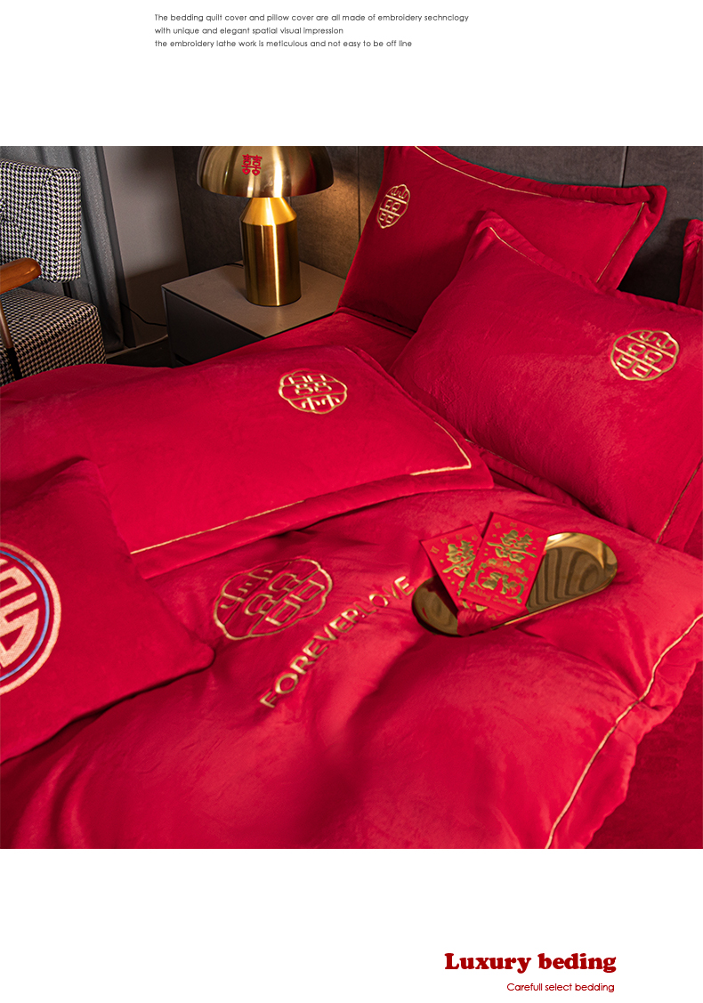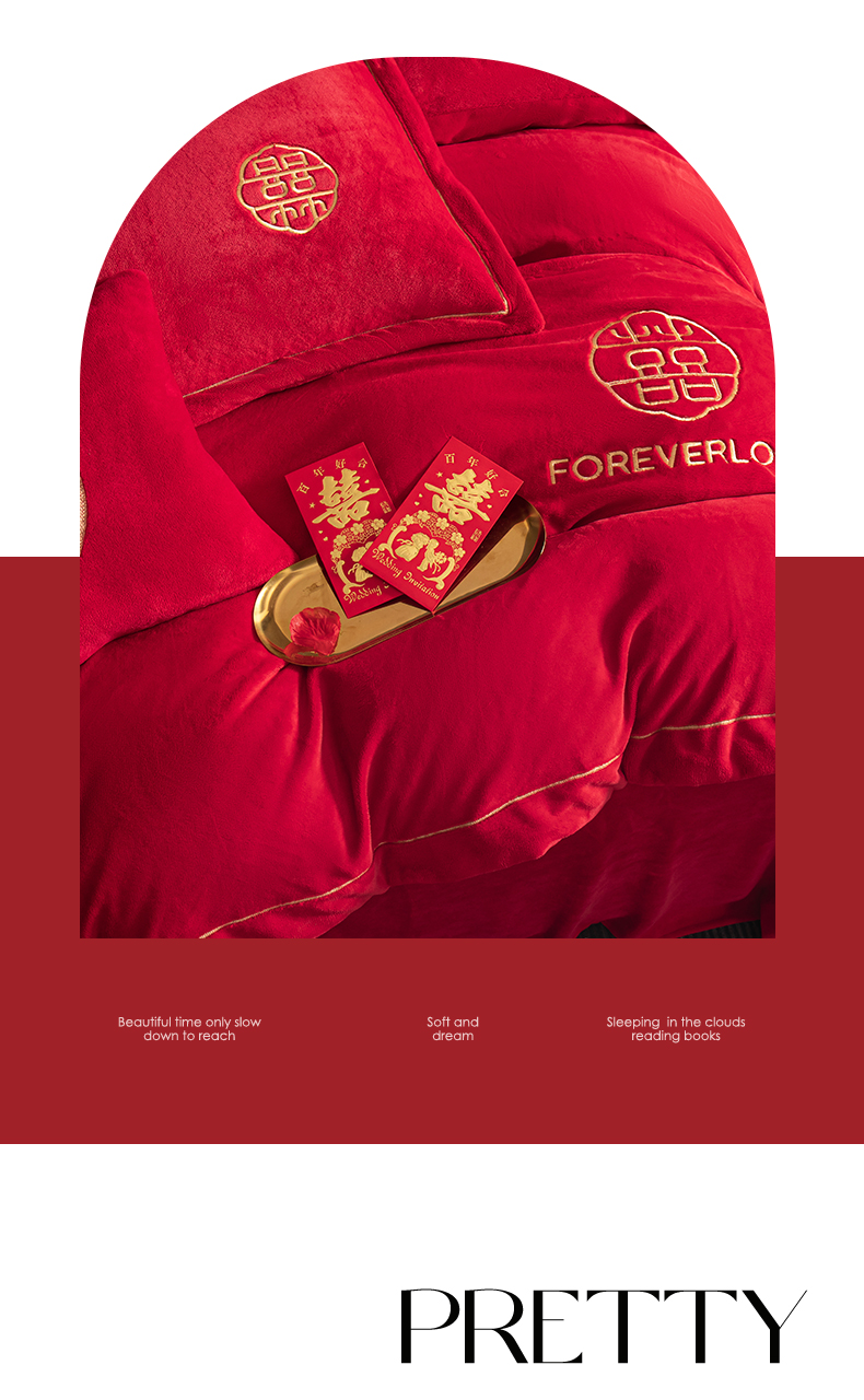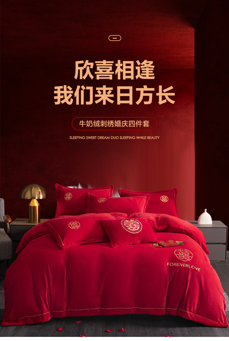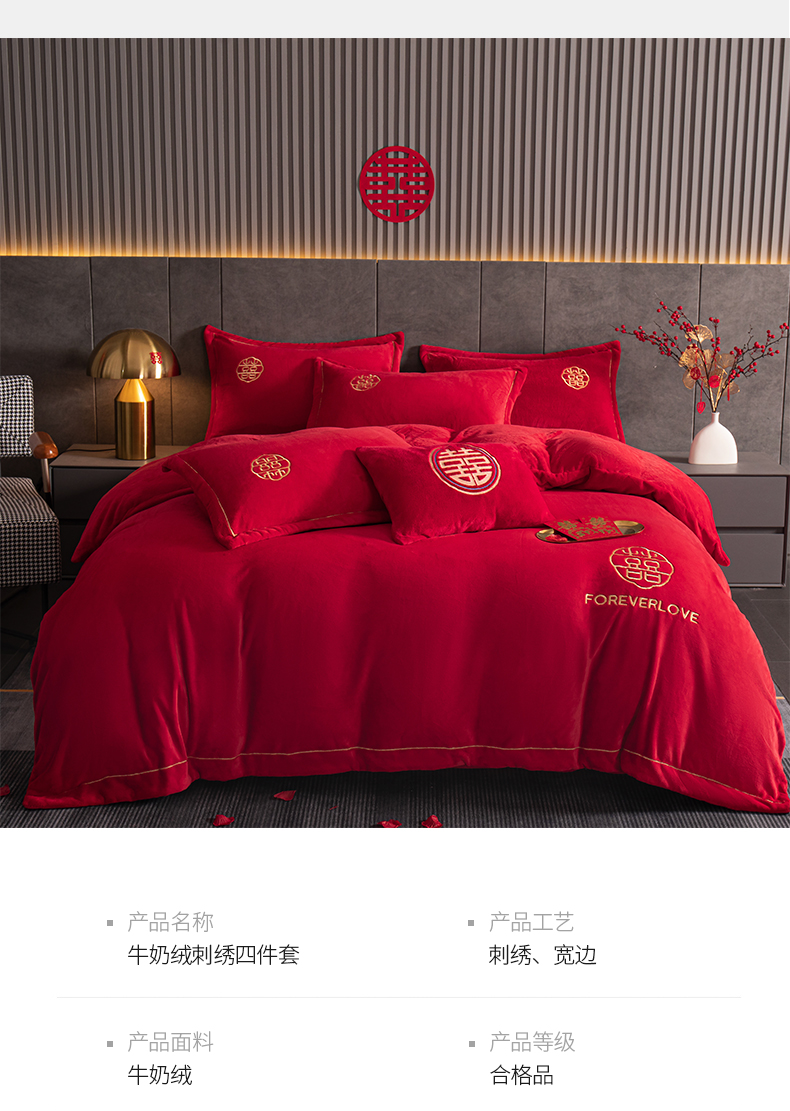 商品名称:花愿 2025新款婚庆牛奶绒四件套-拍法二 永恒之恋