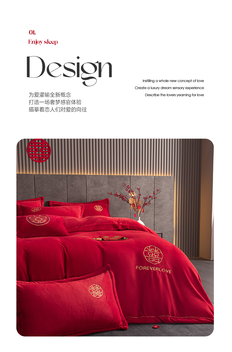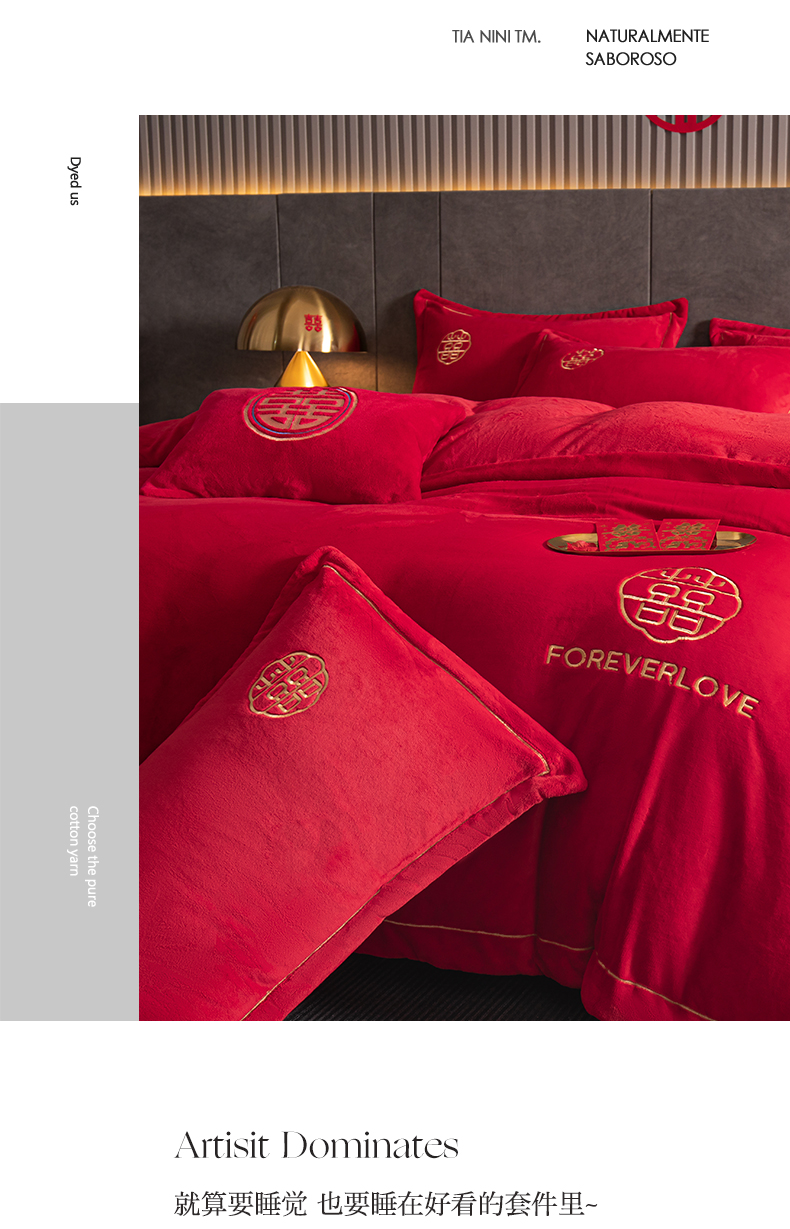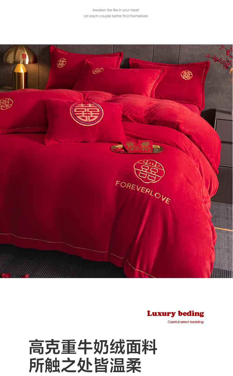 花愿 2025新款婚庆牛奶绒四件套-拍法二 永恒之恋