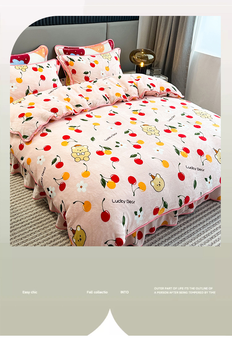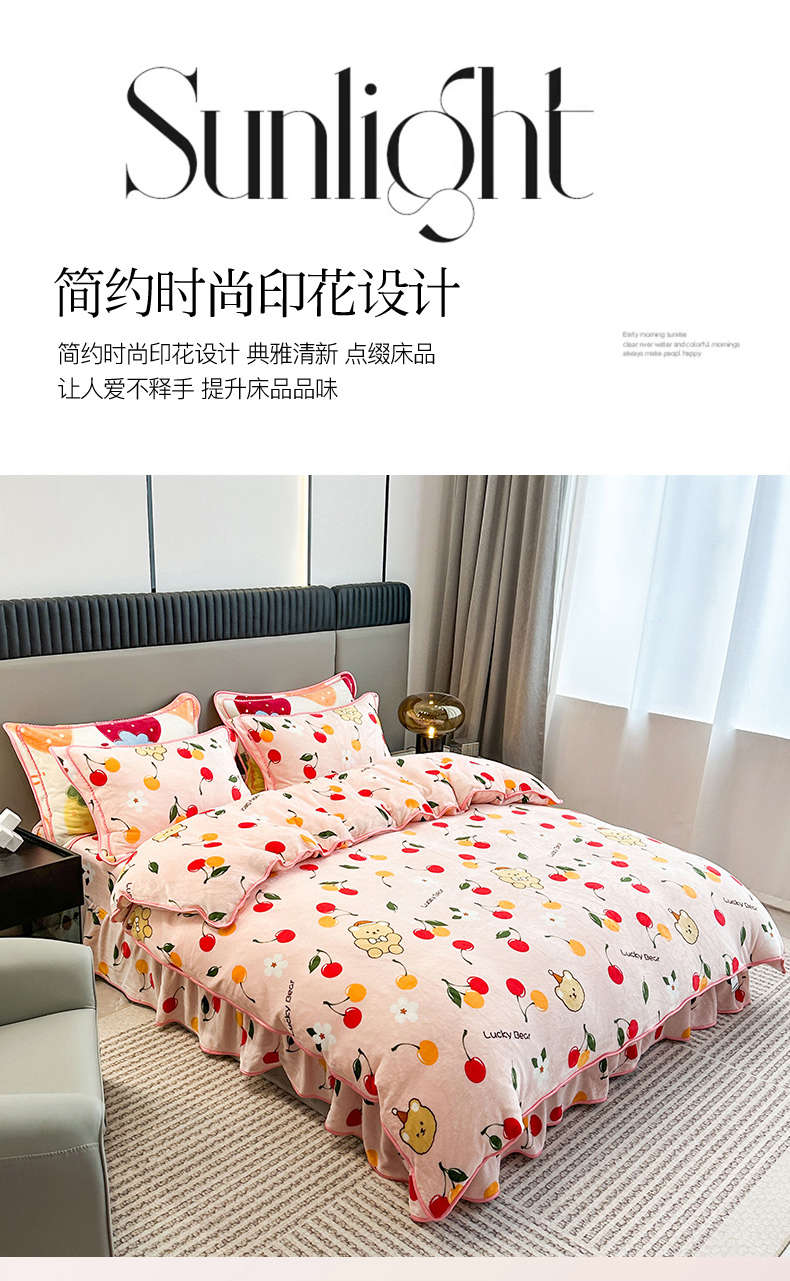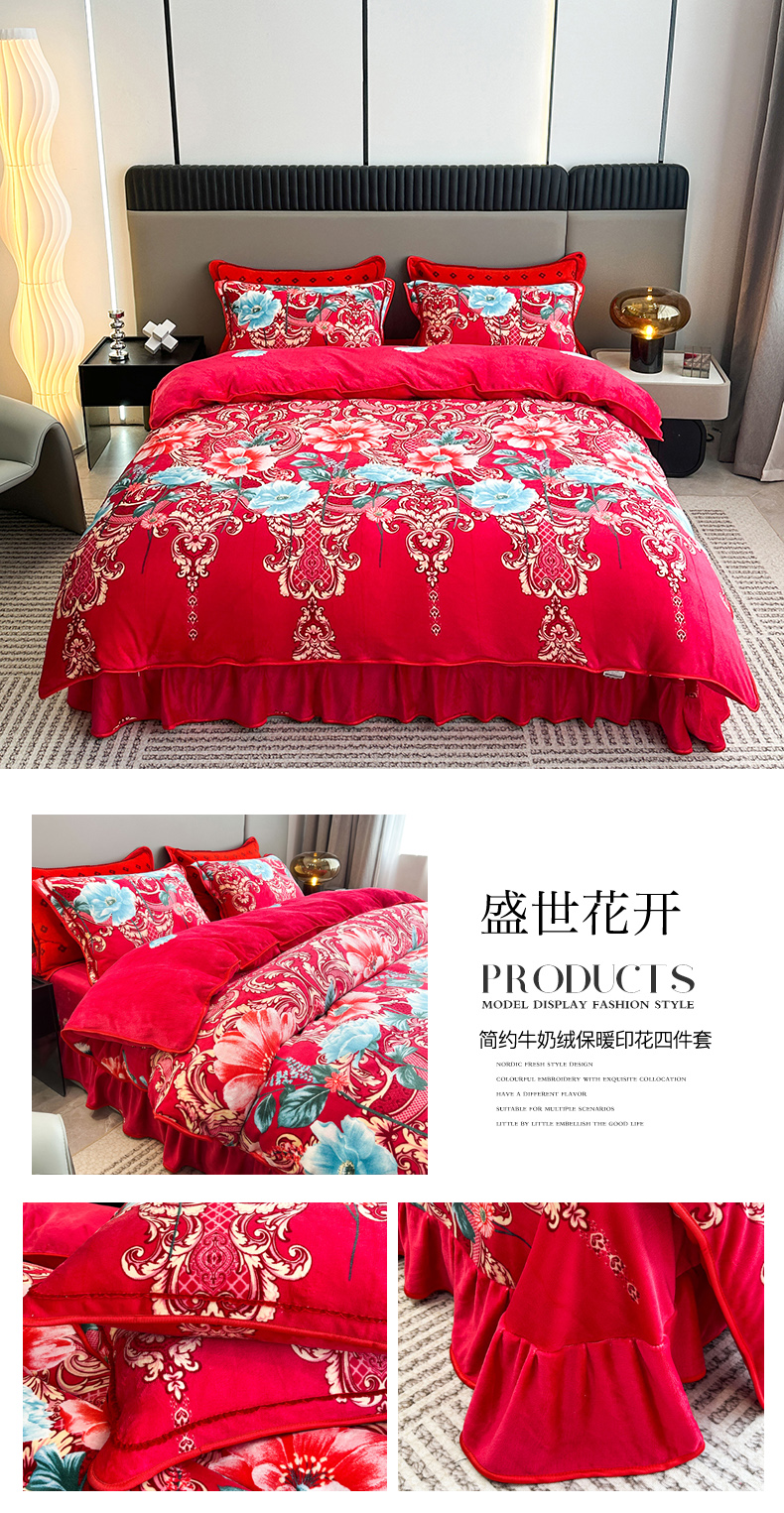 商品名称:欧喜璐 2023新款高克重牛奶绒四件套法莱绒金貂绒8.5斤加厚保暖-印花款 盛世花开
