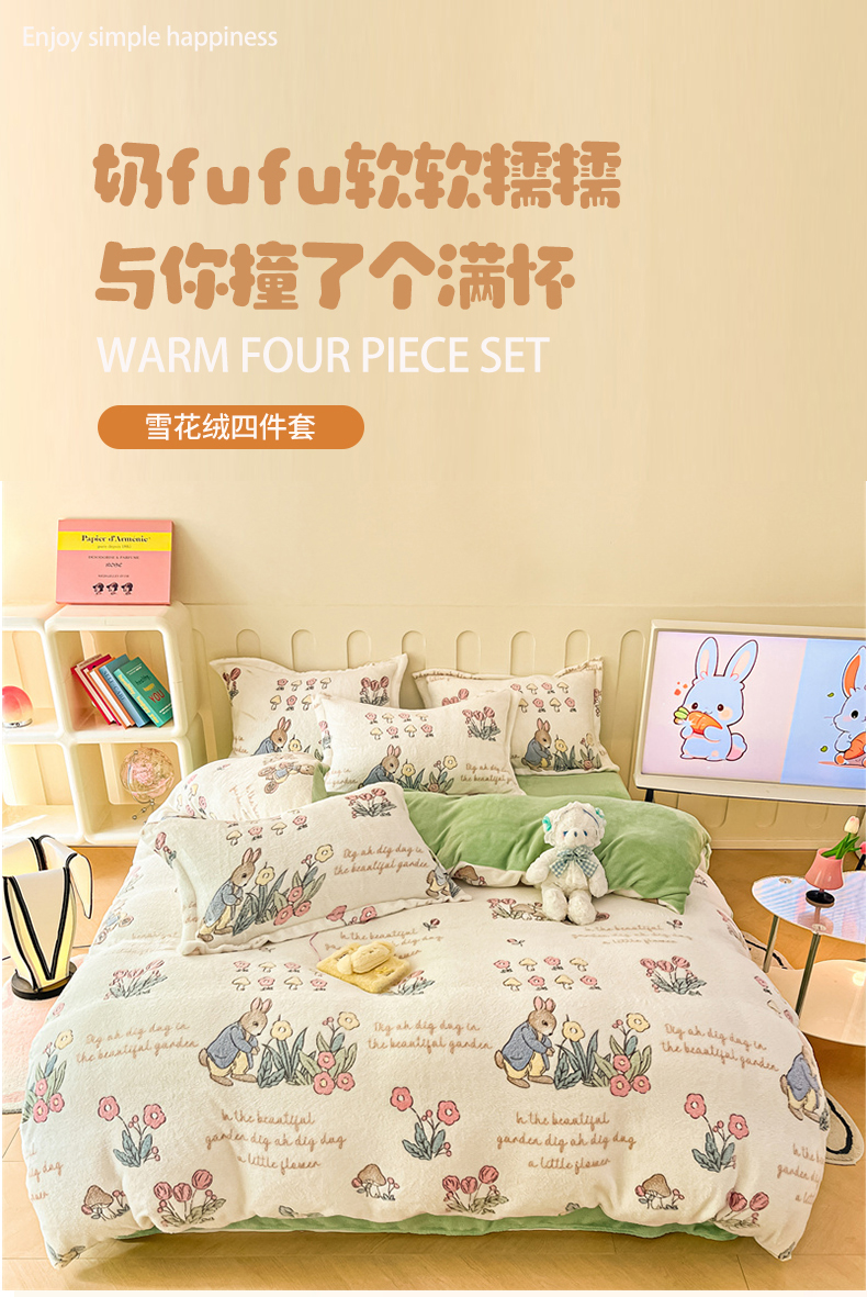 当前位置: 91家纺网 > 商品网购 > 床品套件 > 四件套 > 雕花绒四件套 > 苏拉家居 2023新款5D雕花雪花绒四件套 水果小熊