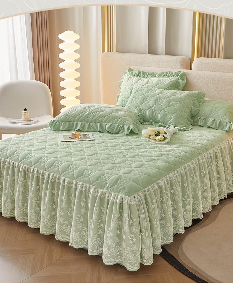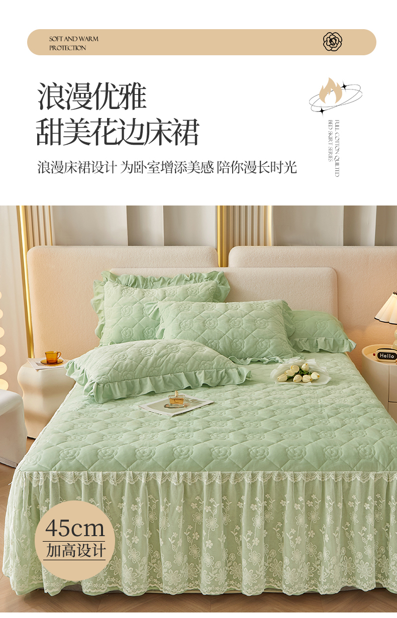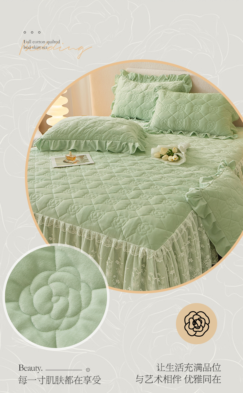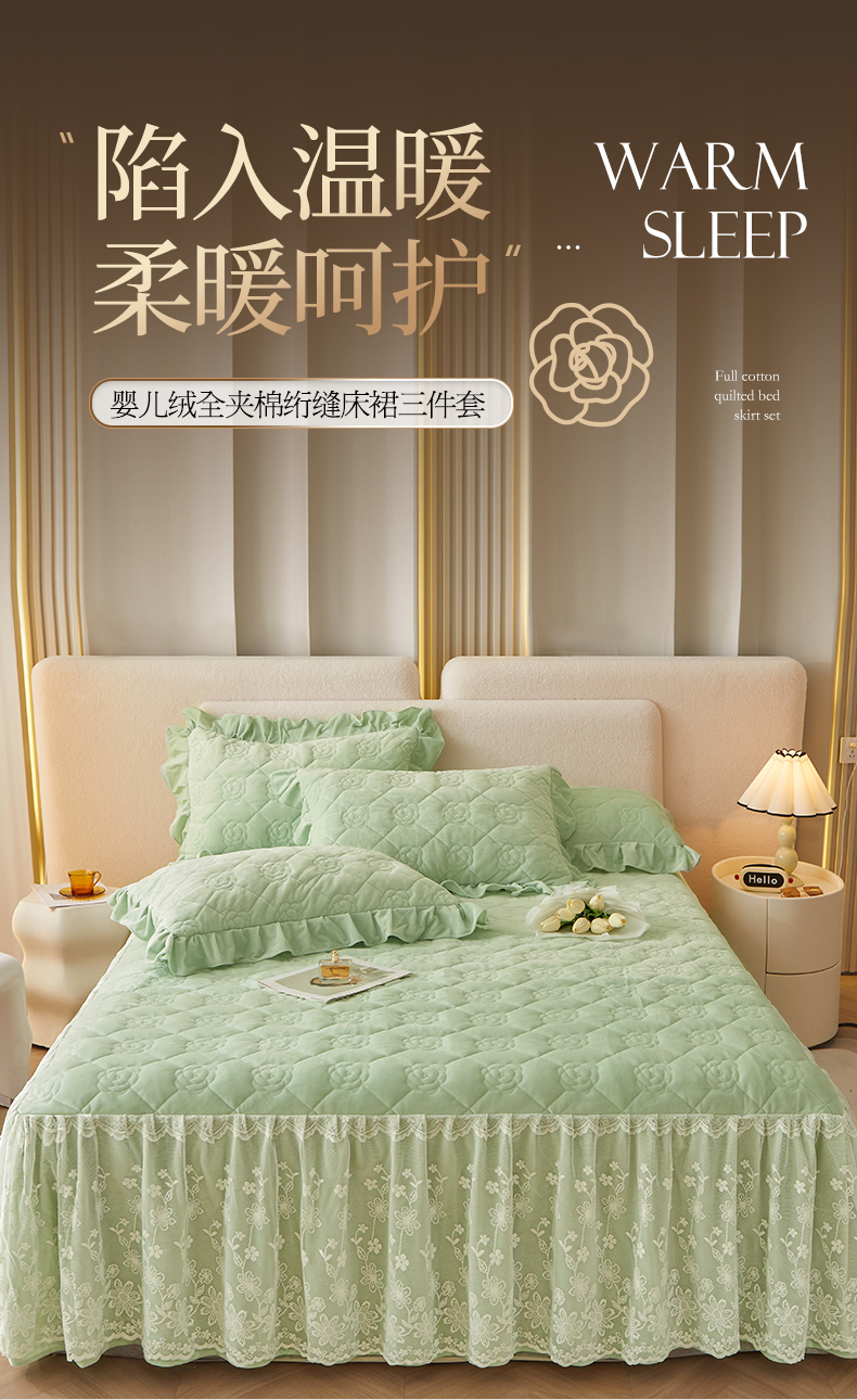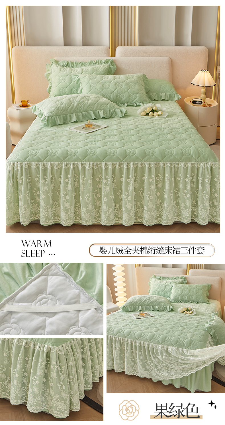 宜凡2023新款婴儿绒全夹棉床裙三件套 果绿色
