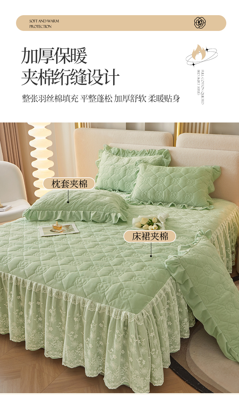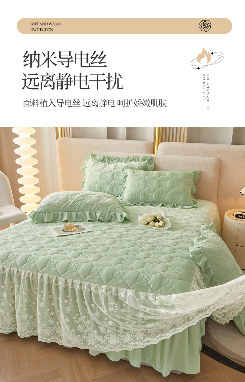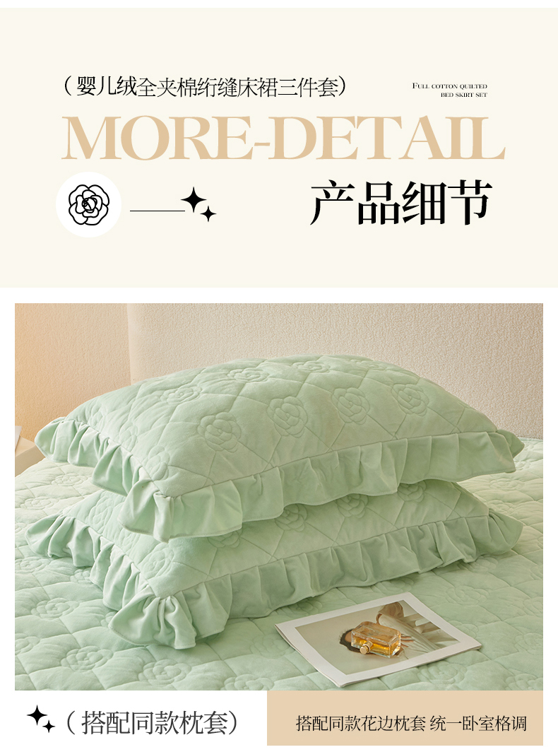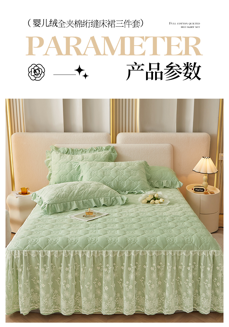 商品名称:宜凡2023新款婴儿绒全夹棉床裙三件套 果绿色