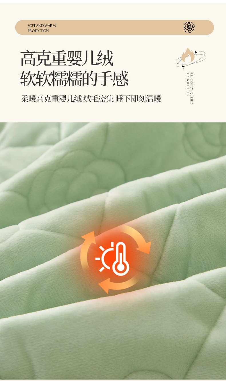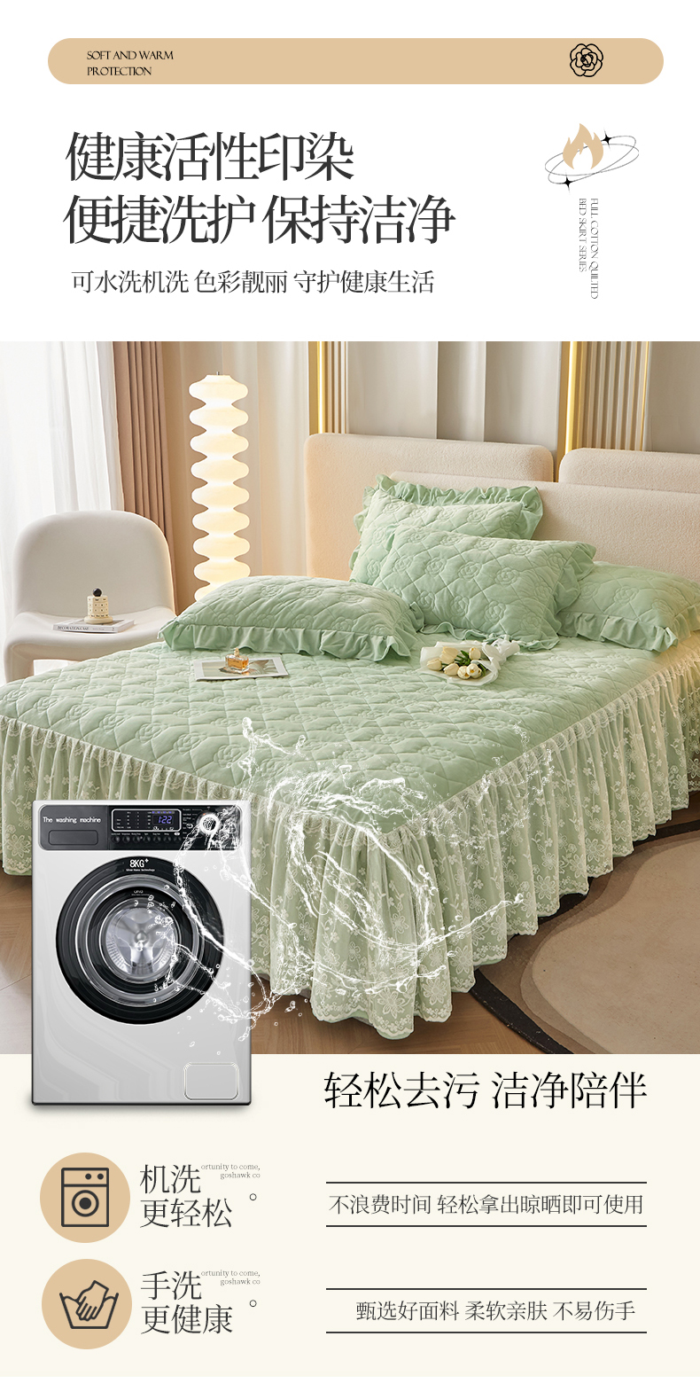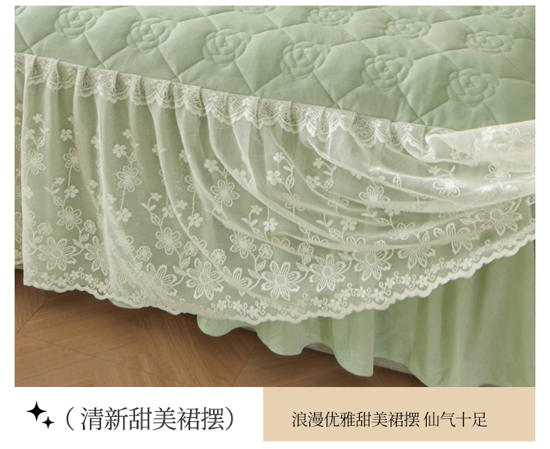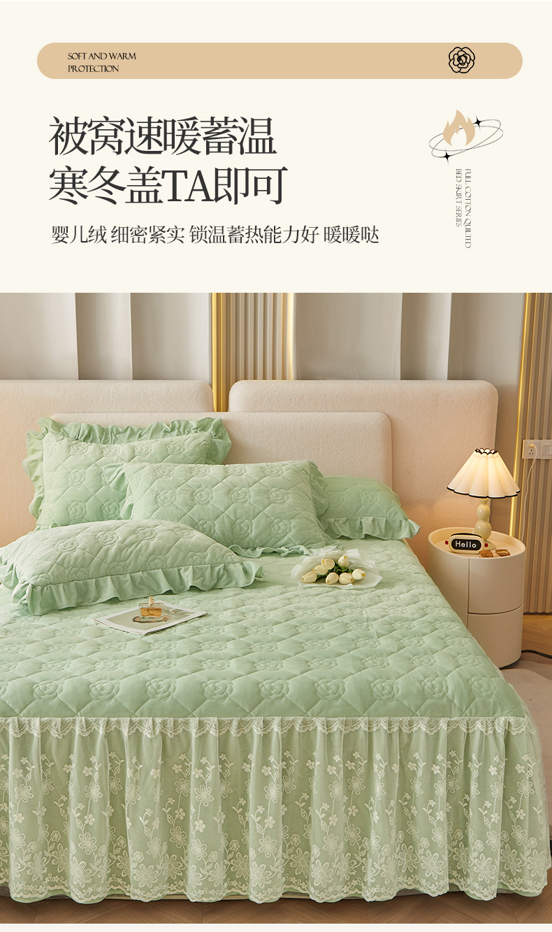 商品名称:宜凡2023新款婴儿绒全夹棉床裙三件套 果绿色