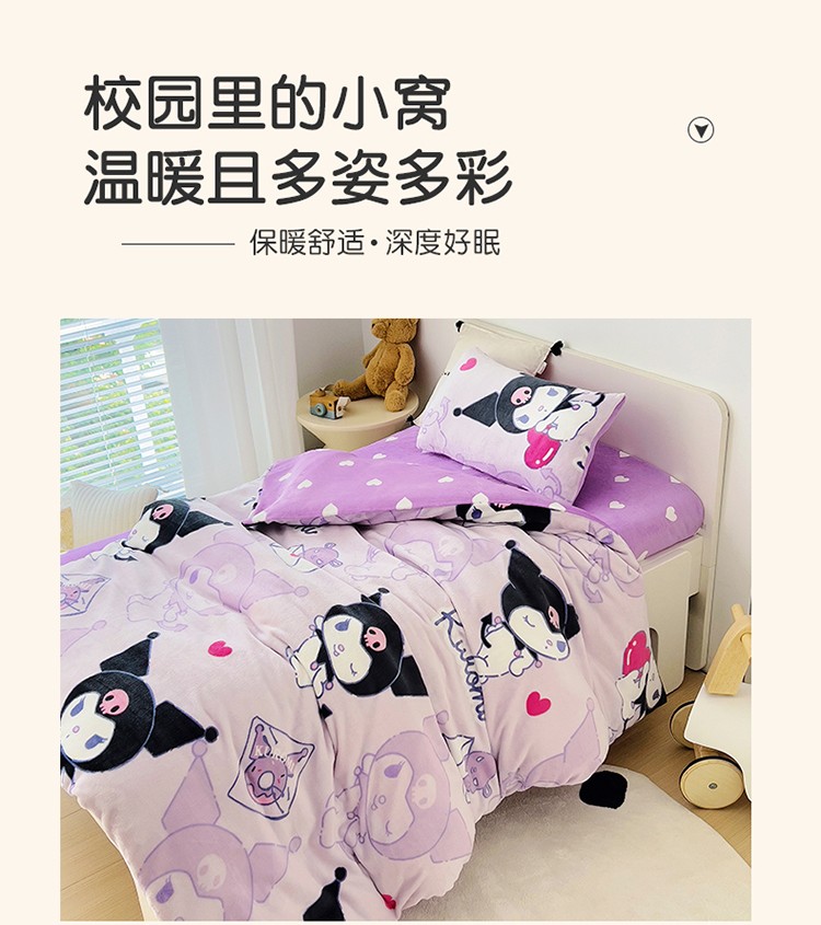 当前位置: 91家纺网 > 商品网购 > 婴童用品 > 婴童床品套件 > 三丽鸥A类牛奶绒幼儿园被子三件套儿童宝宝午睡套件含芯六件套 巴洛库洛米