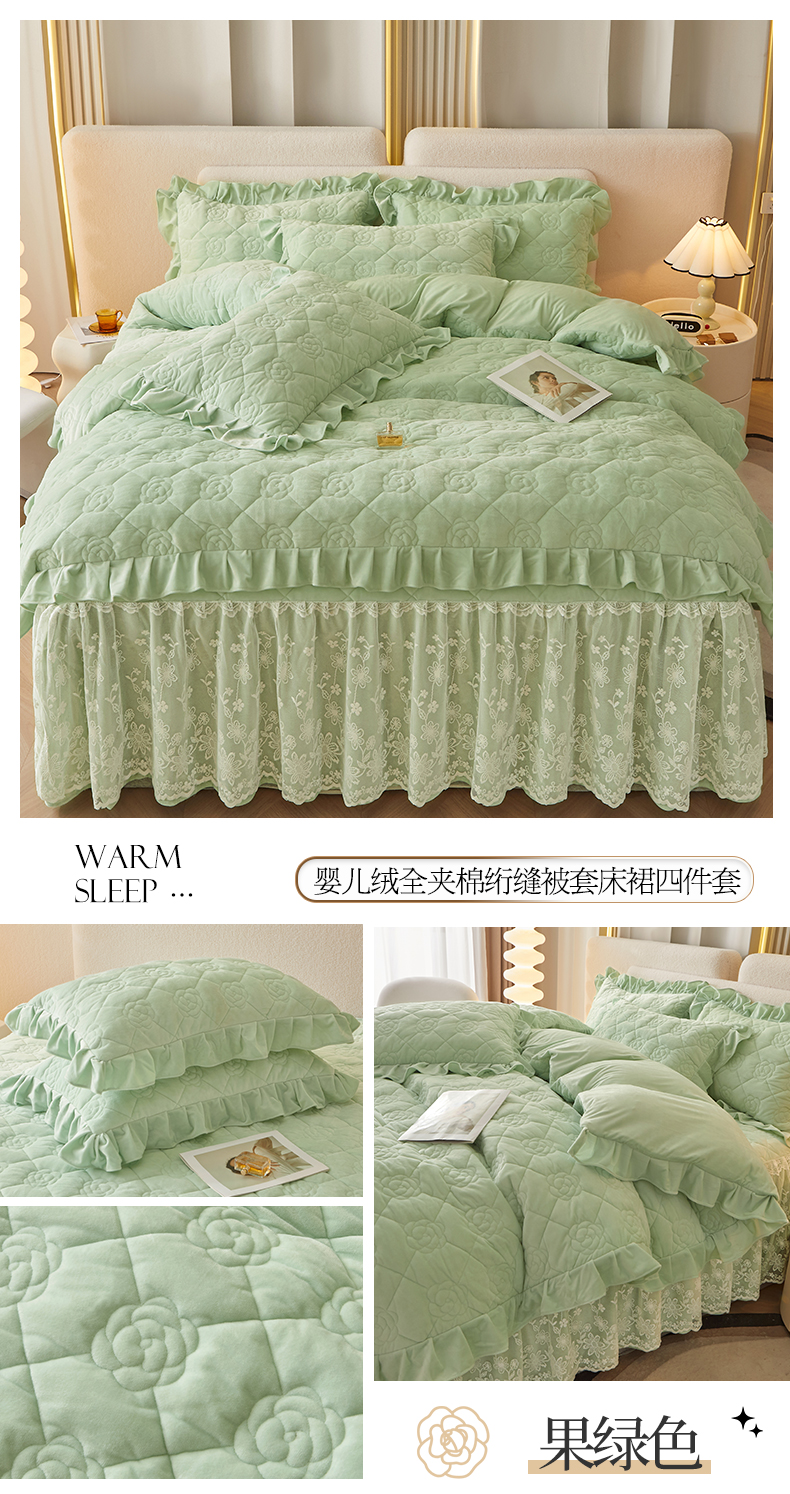 (总)宜凡2023新款婴儿绒全夹棉床裙四件套