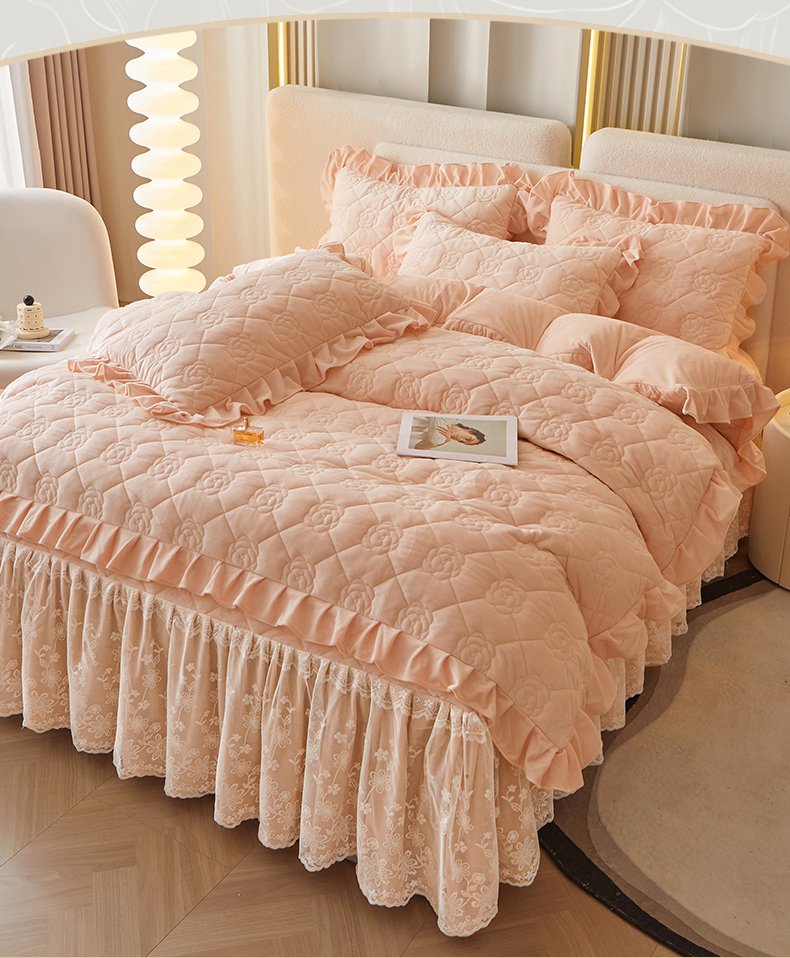 (总)宜凡家纺 2025新款兔绒提花牛奶绒夹棉床裙四件套,爱心 少女粉,爱心 粉紫,爱心 驼色,蝶舞 大红,蝶舞 米色,蝶舞 浅紫,蝶舞 玉色,简爱 苍青,简爱 豆沙紫,简爱 玉色,樱桃 苍青,樱桃 豆沙紫,樱桃 奶油白
