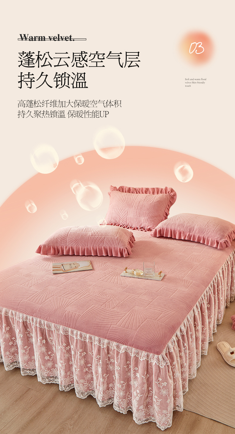 商品名称:宜凡 2023新款烂花牛奶绒床裙三件套 锦绣-柔粉
