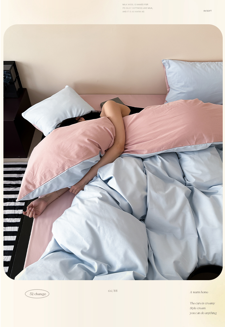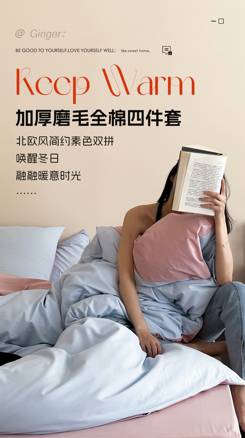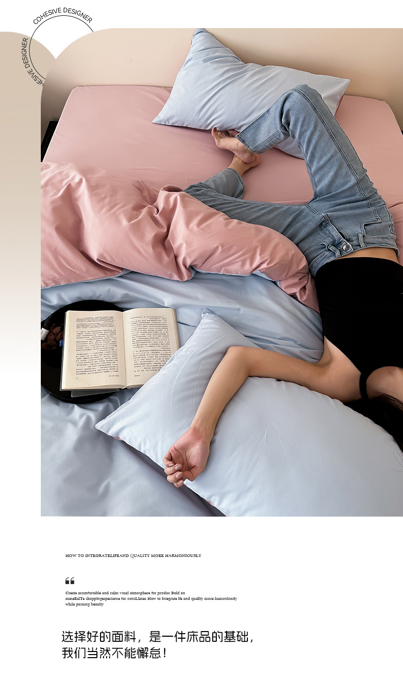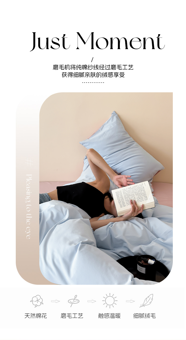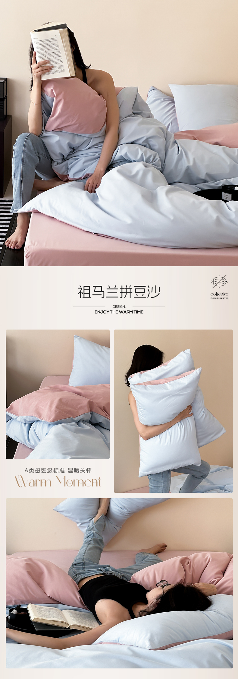 当前位置: 91家纺网 > 商品网购 > 床品套件 > 四件套 > 普通磨毛四件套 > 时光里 2023北欧风简约纯色双拼60s加厚磨毛全棉四件套 祖马兰拼豆沙