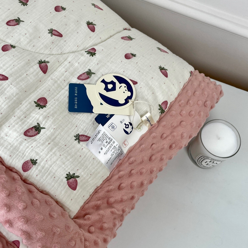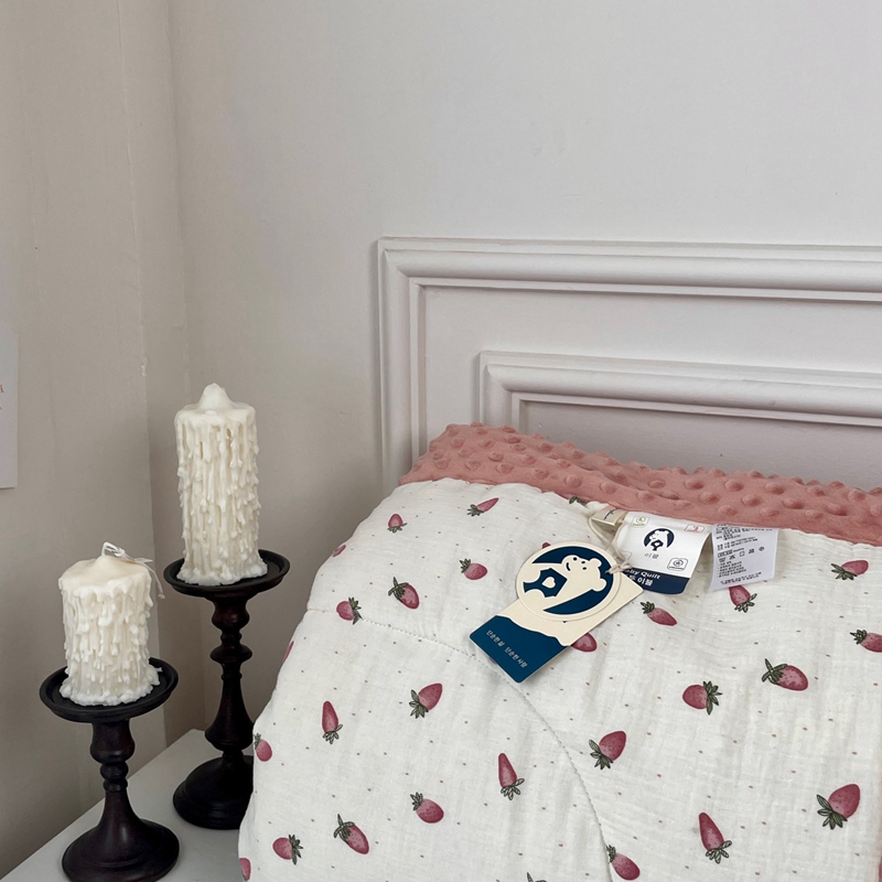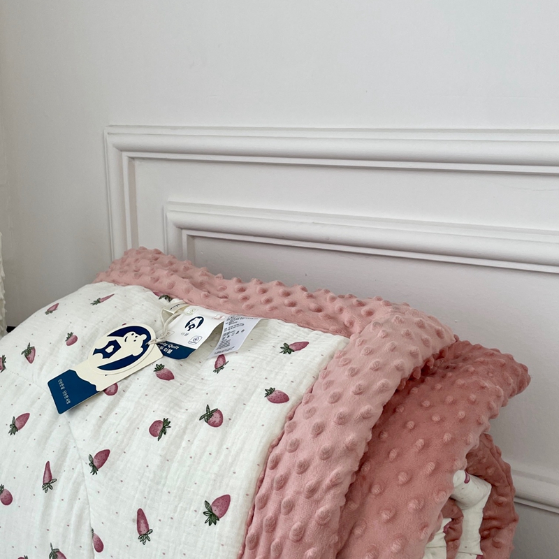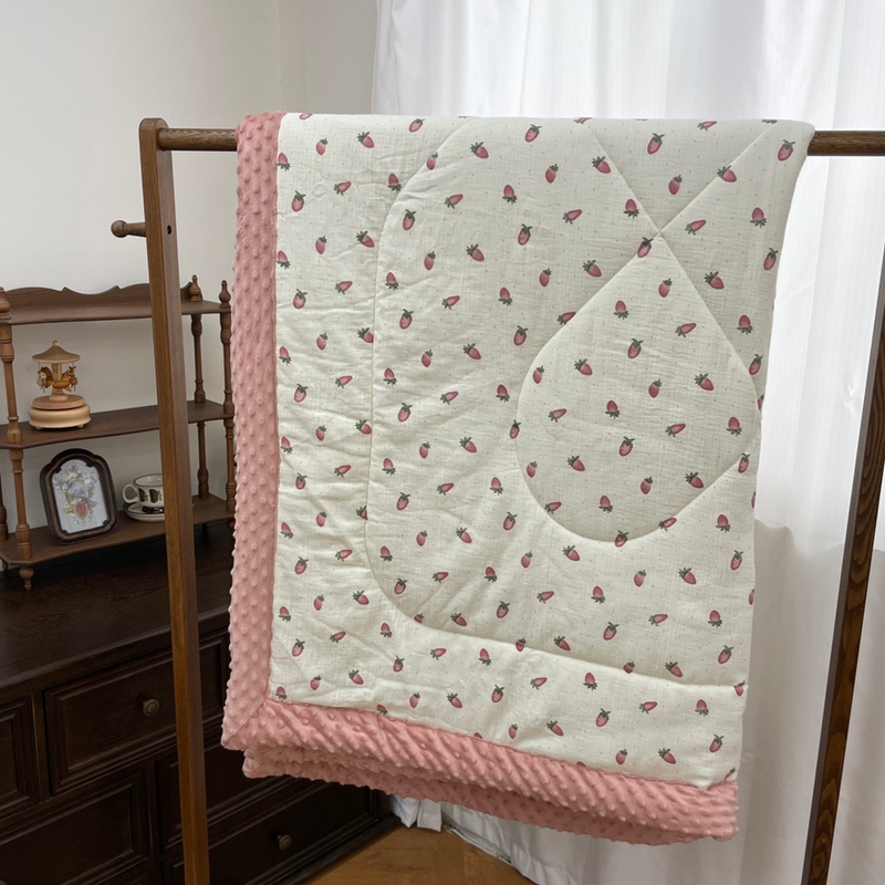 商品名称:源启生活 2023新款全棉皱皱纱手包边豆豆被 奶油草莓