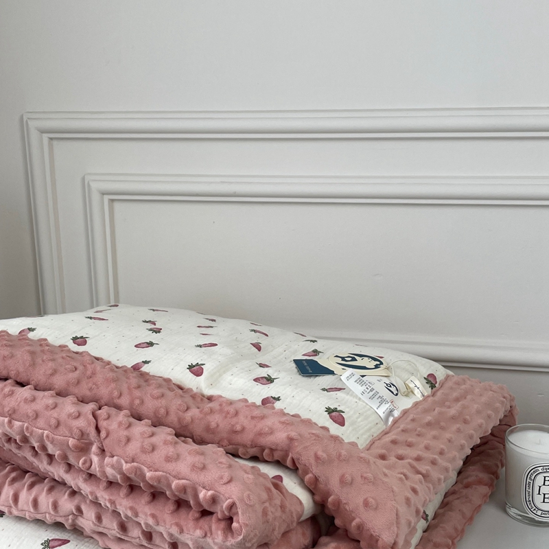 源启生活 2023新款全棉皱皱纱手包边豆豆被 奶油草莓