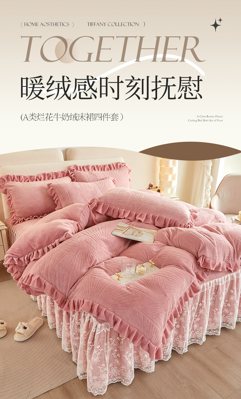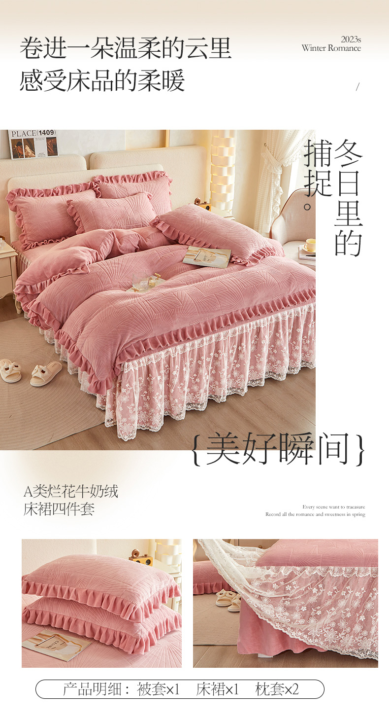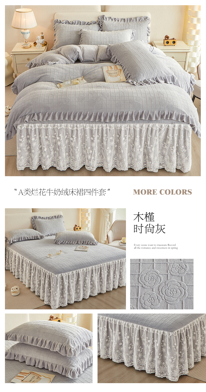 当前位置: 91家纺网 > 商品网购 > 床品套件 > 四件套 > 牛奶绒四件套 > 宜凡 2023新款烂花牛奶绒床裙四件套 木槿-时尚灰