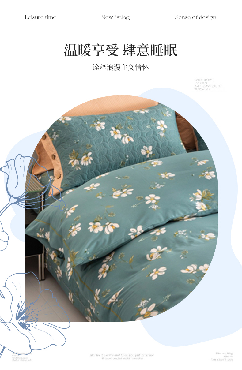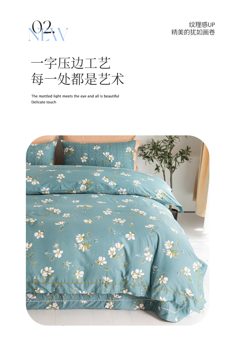 商品名称:优乐家纺 2025新款纯棉斜纹床盖款单层被套四件套 仙草