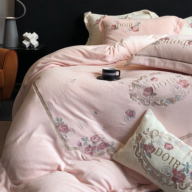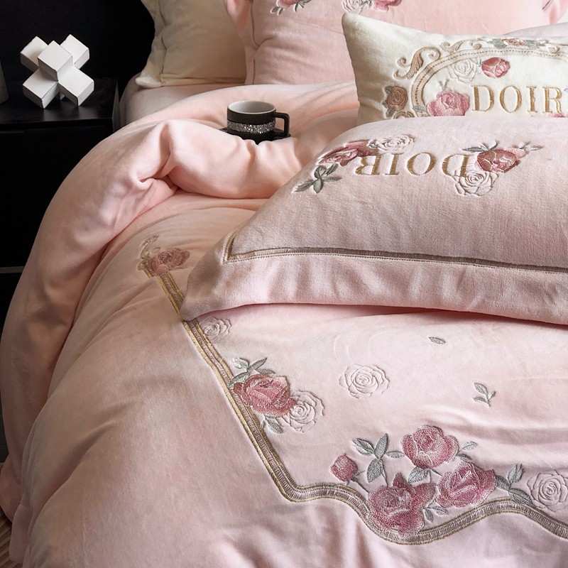 商品名称:馨蕊 2023新款秋冬轻奢煦暖绒四件套-秘密花园 粉色