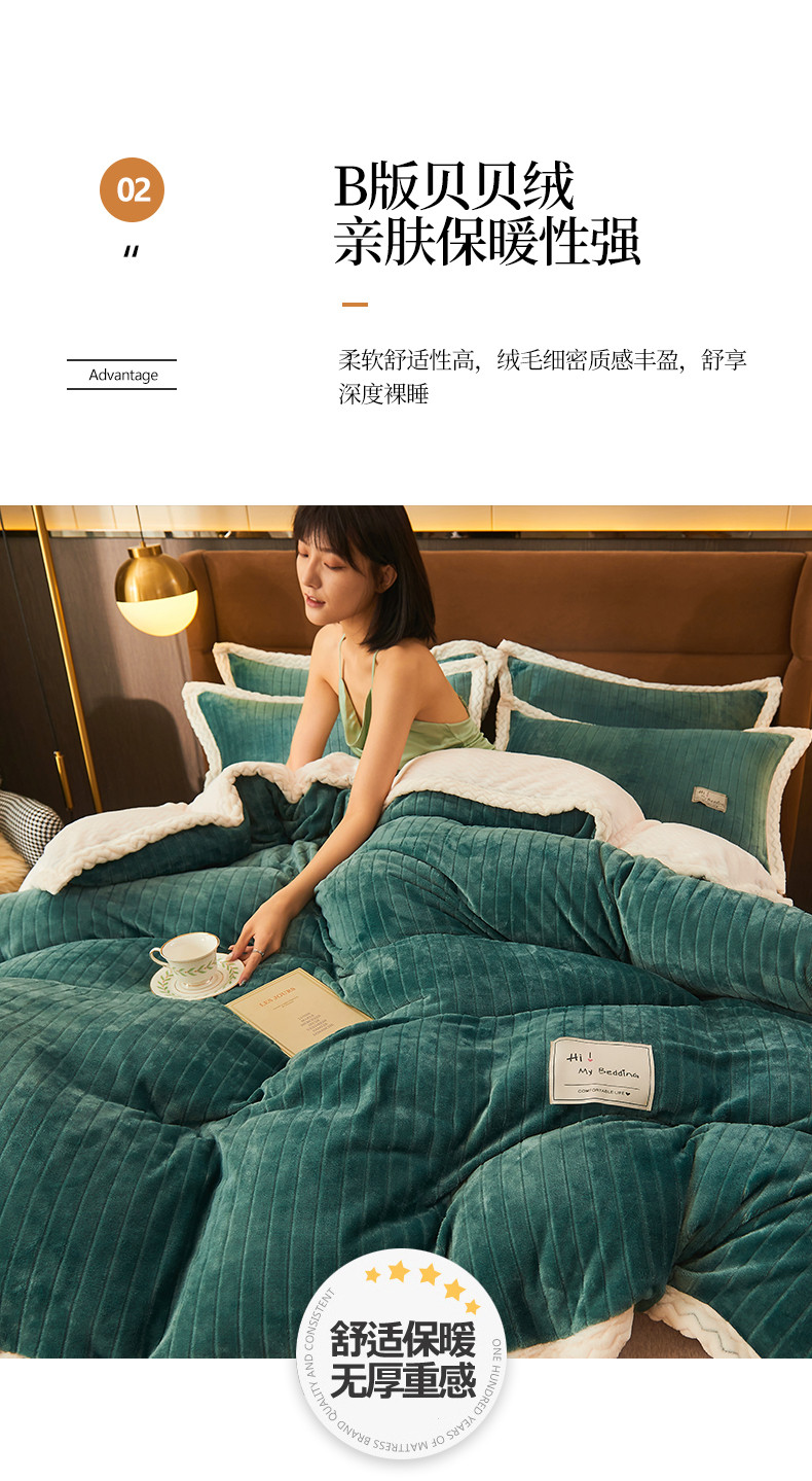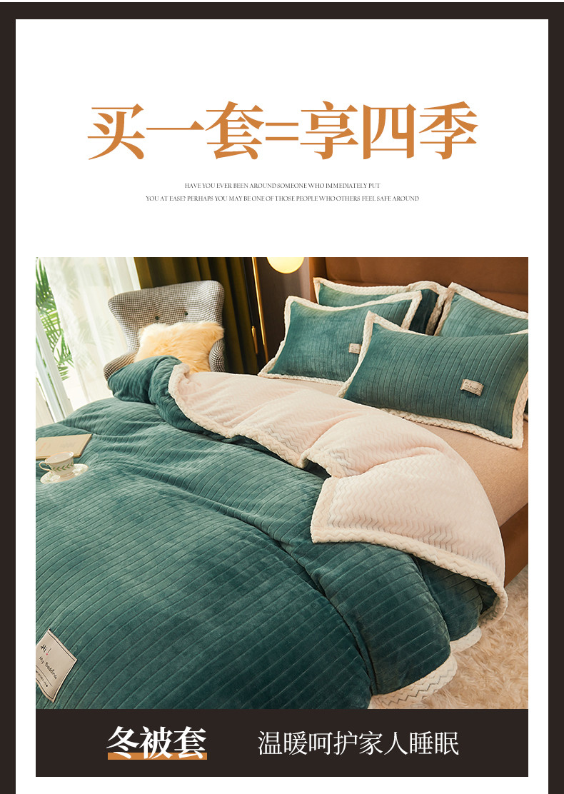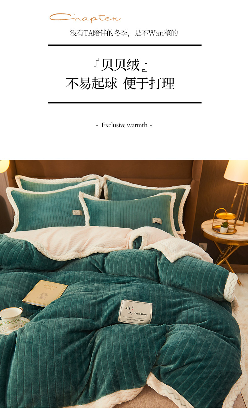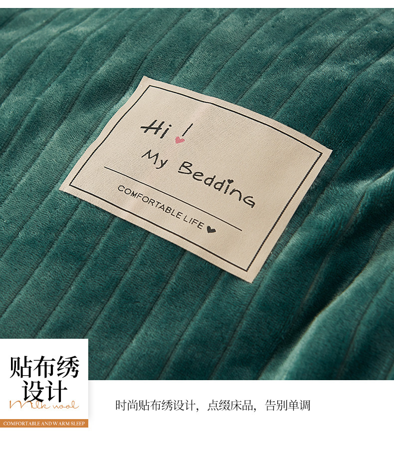 商品名称:全季家居 2023新款纯色印花抗静电大包边牛奶绒贝贝绒单被套 翡翠绿