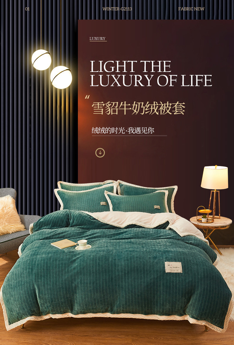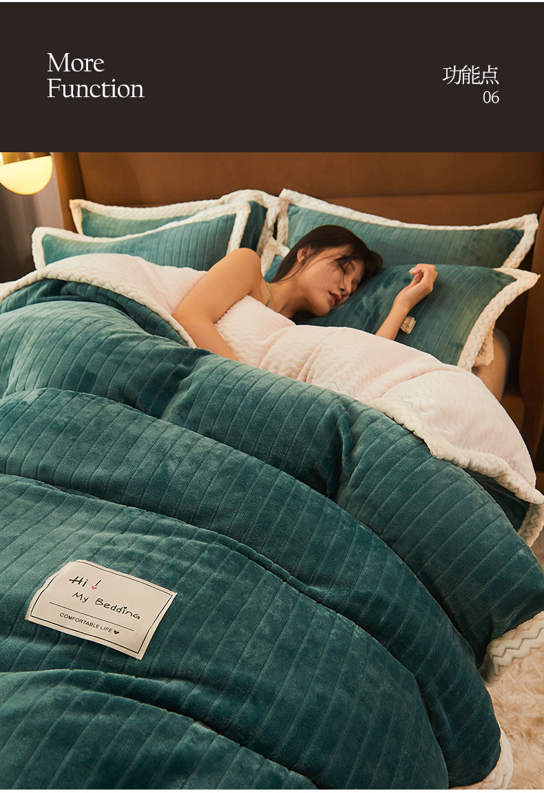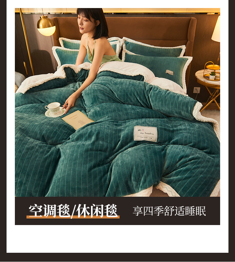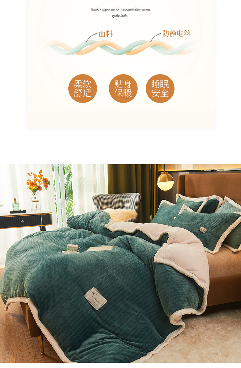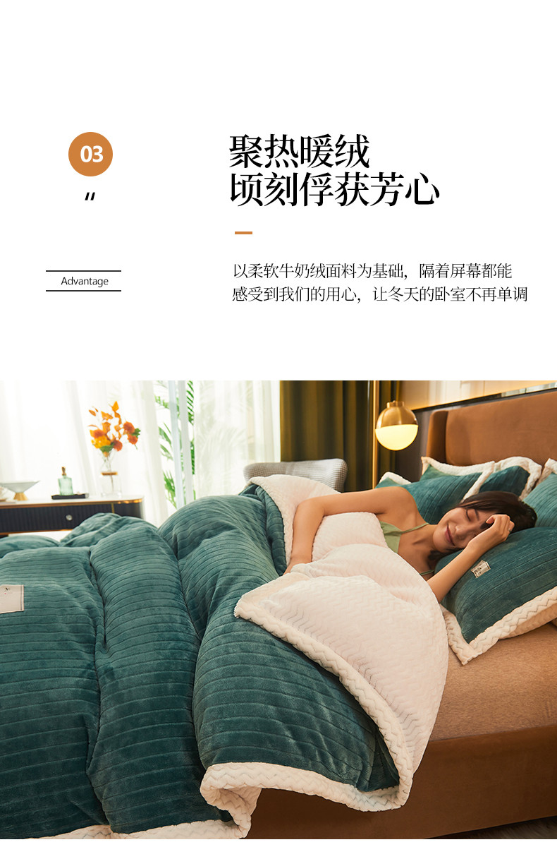 商品名称:全季家居 2023新款纯色印花抗静电大包边牛奶绒贝贝绒单被套 翡翠绿
