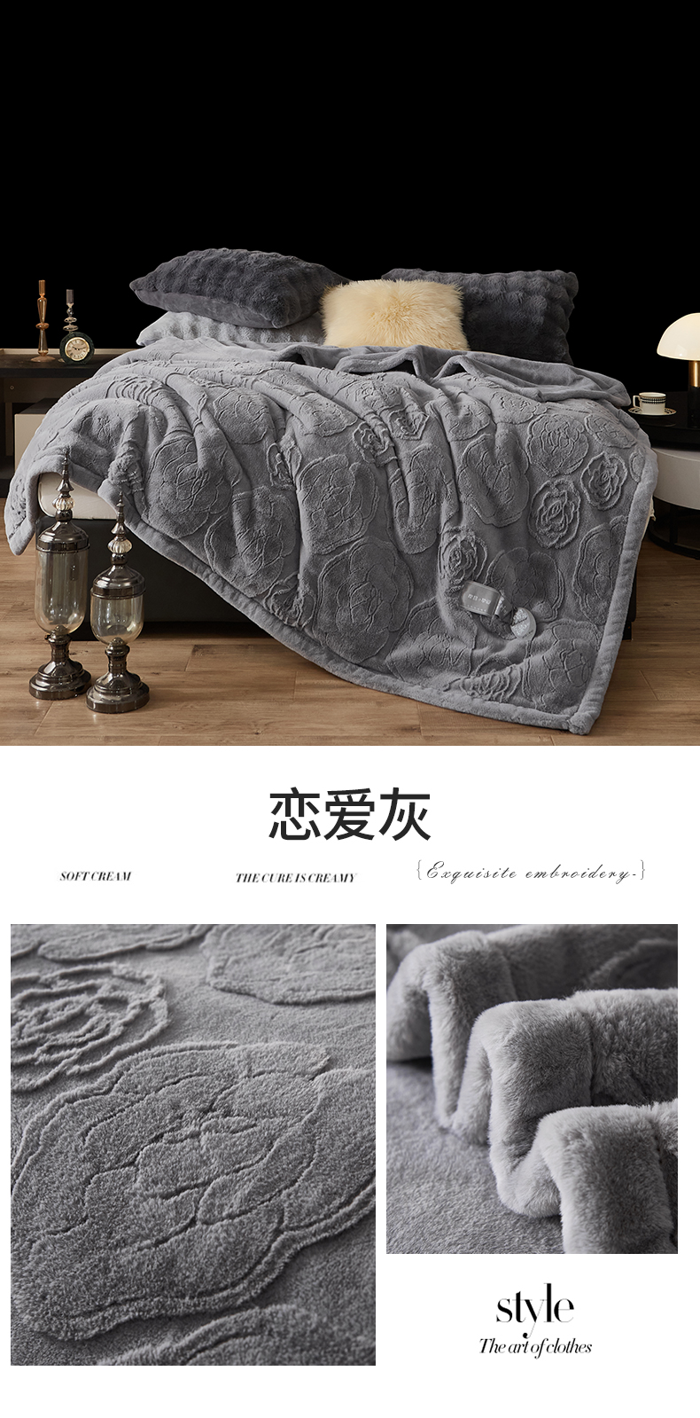 商品名称:凯轩毛毛毯毯子网销专供 23新款仿皮草提花毛毯毯子 恋爱灰