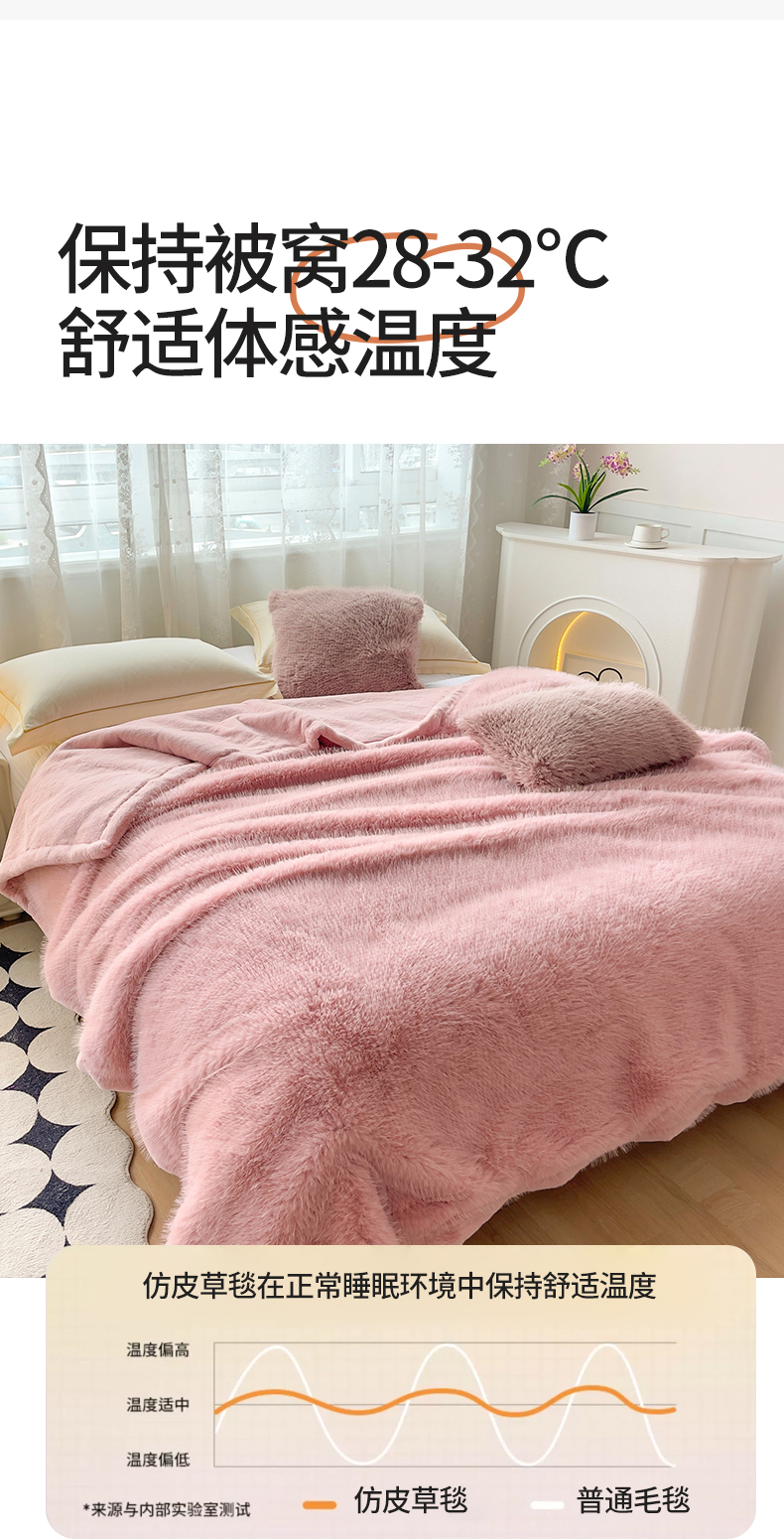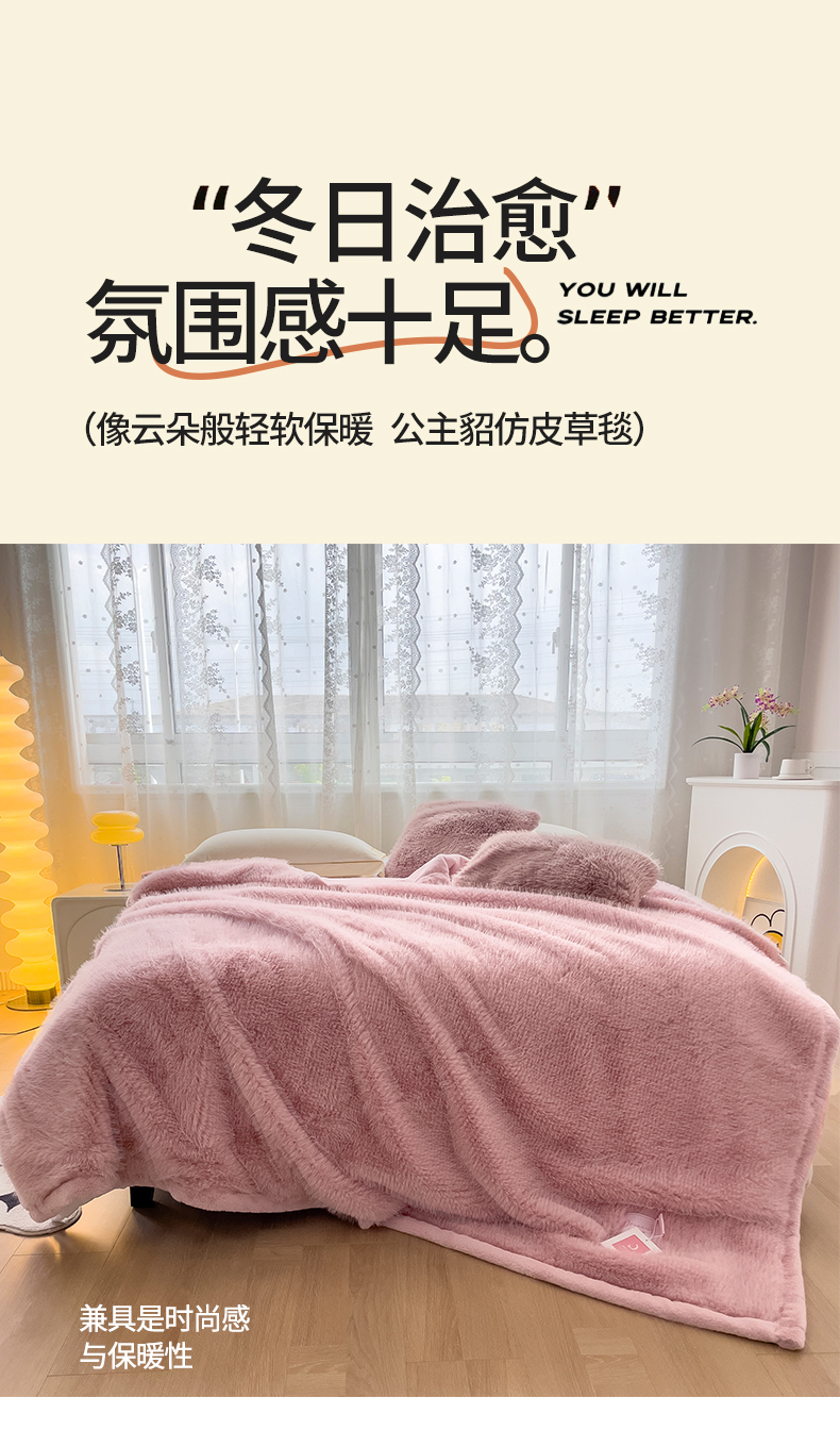 凯轩毛毛毯毯子网销专供 2024新款公主貂仿皮草毛毯毯子终版 樱花粉