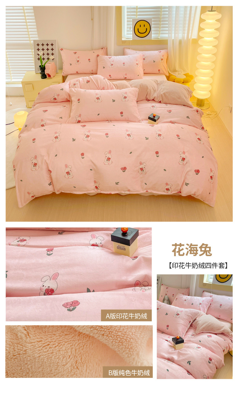 当前位置: 91家纺网 > 商品网购 > 床品套件 > 四件套 > 牛奶绒四件套 > 梦柏家纺 2023新款高克重牛奶绒印花四件套 花海兔