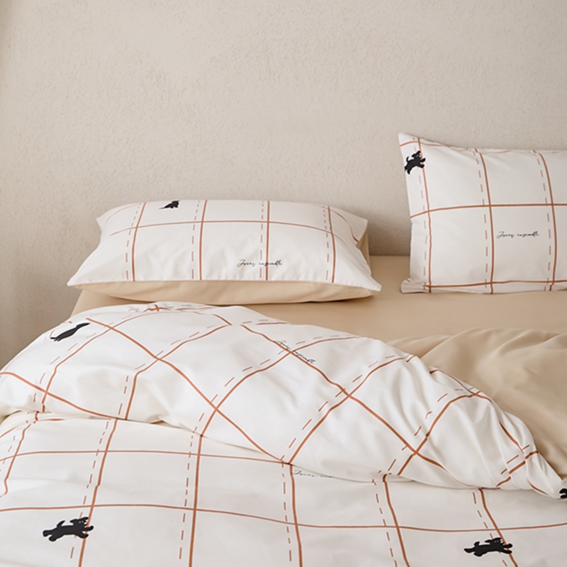 (总)原研家居 2023新款40支全棉13070印花四件套-野兽派系列,樱桃猫,公主猫,波浪猫,黑乖,蓝条狗,小花狗,竹叶熊,水果茶,波点苹果,生椰冰淇凌,青春