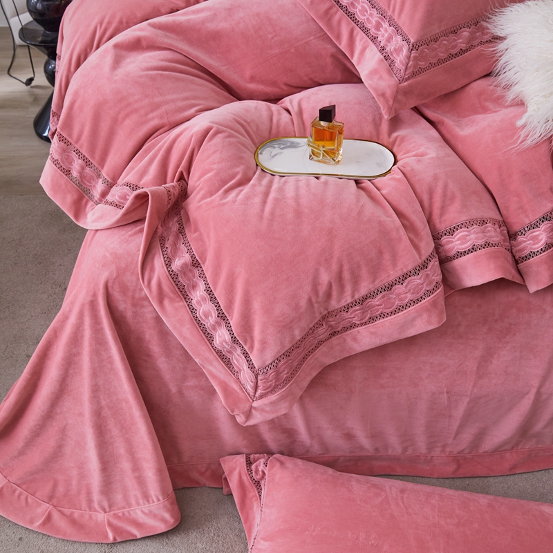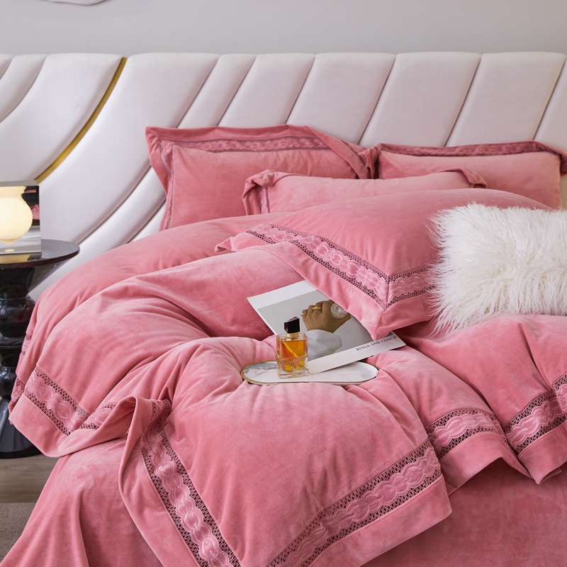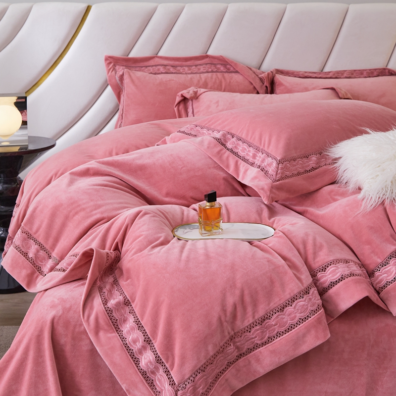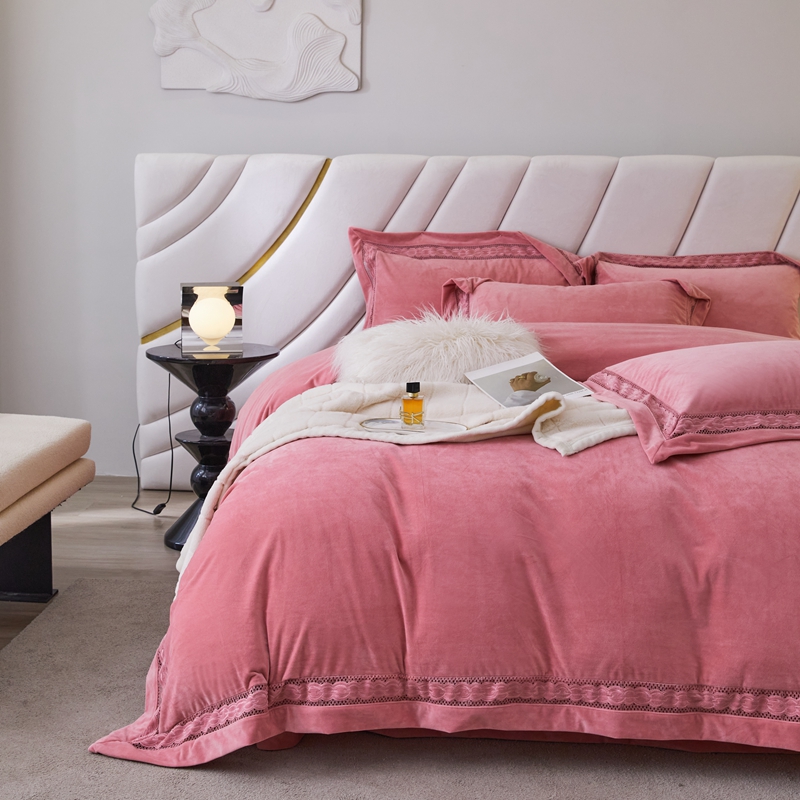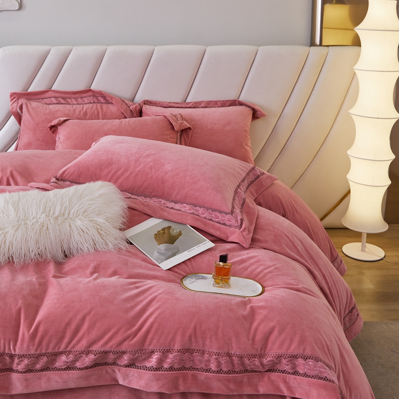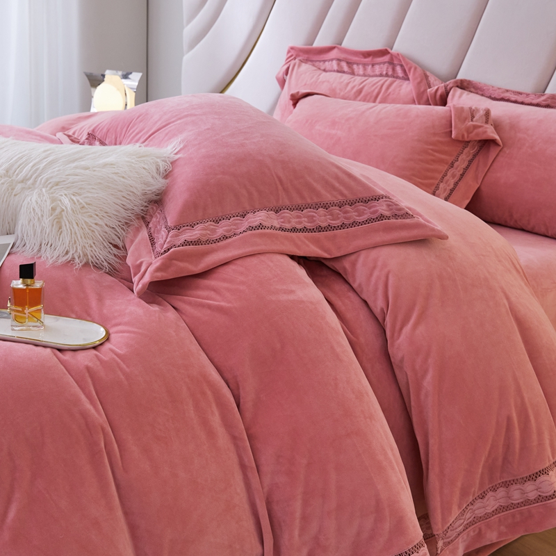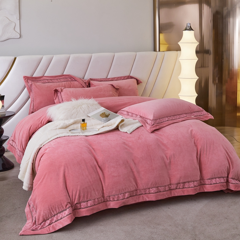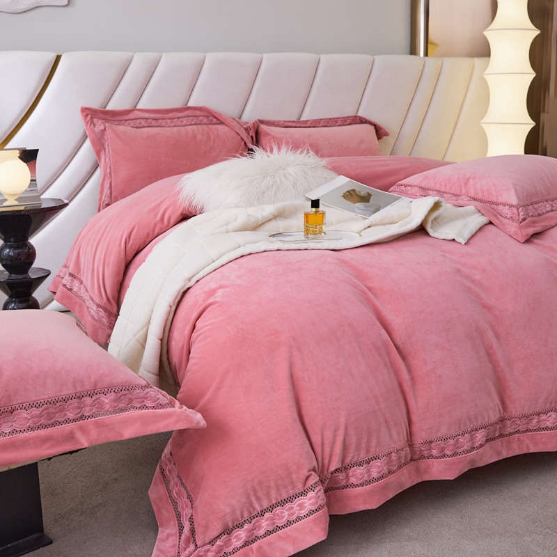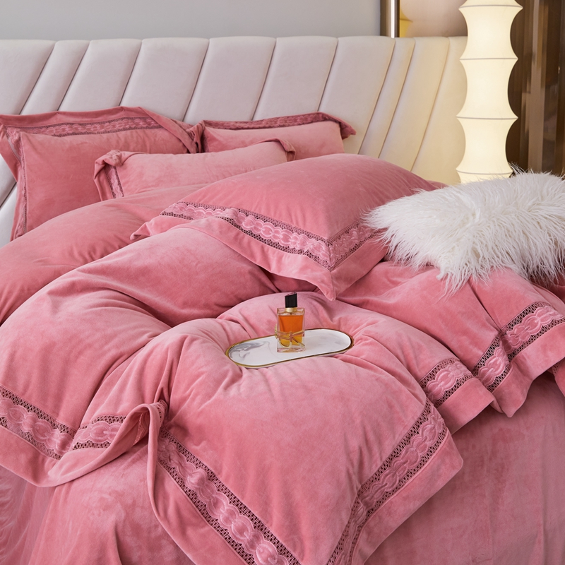 时亿 2023新款A类婴肤牛奶绒四件套-纽约 纽约 蔷薇粉