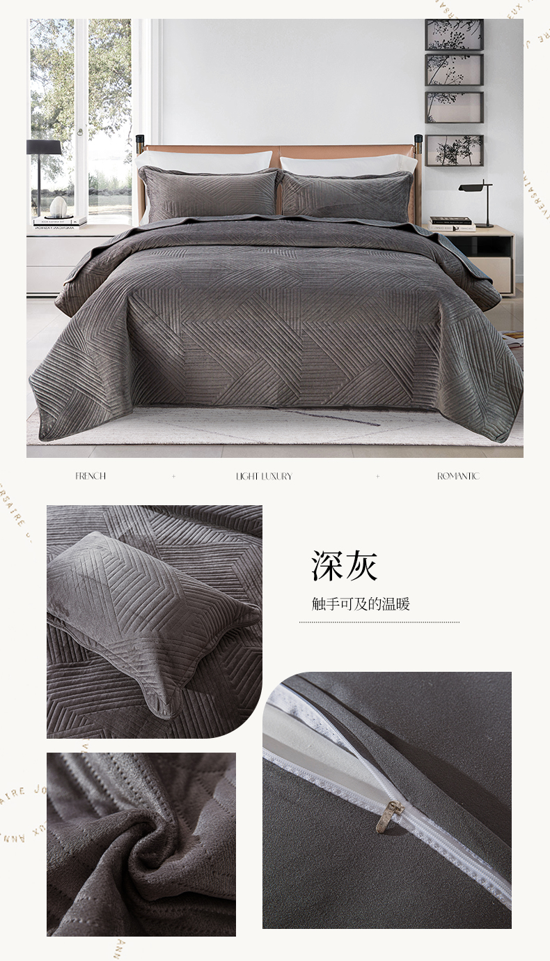 商品名称:恩和家纺 2024新款水晶绒牛奶绒法兰绒床盖线条款 线条款-深灰
