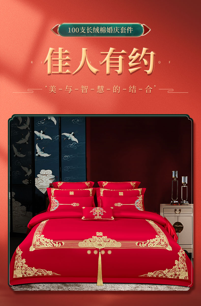 (总)皇潮婚庆馆 2025新款A类布款全棉刺绣婚庆四件套系列,花辰喜盈,百子送喜,龙悦凤鸣,喜事连连,喜迎鸿运