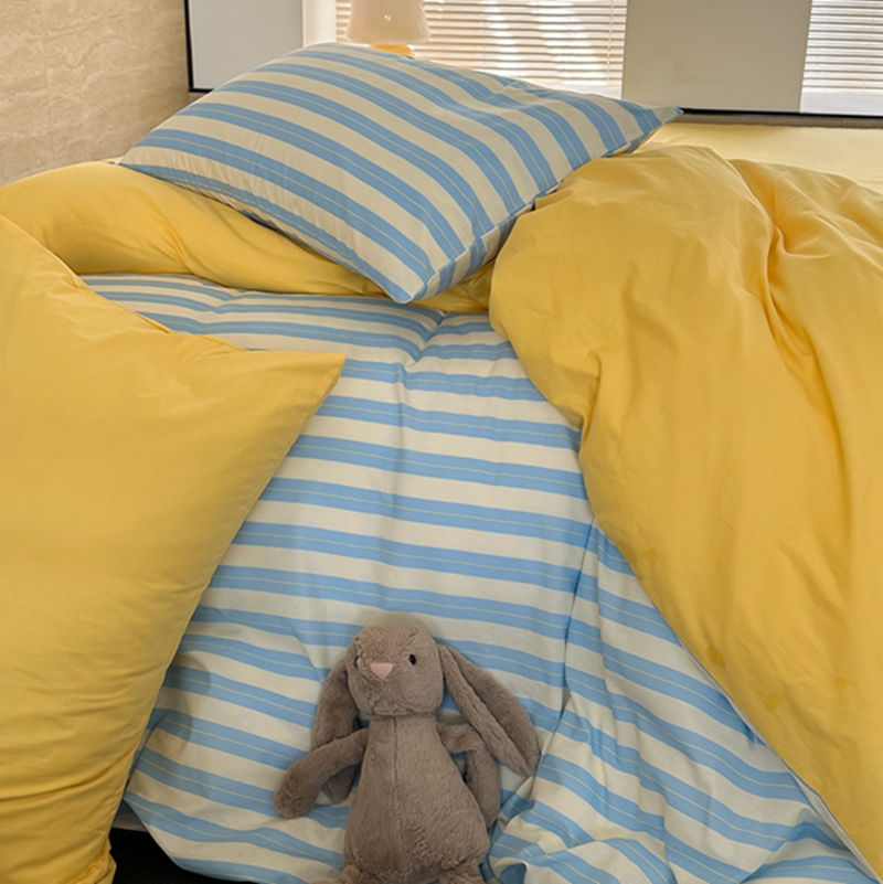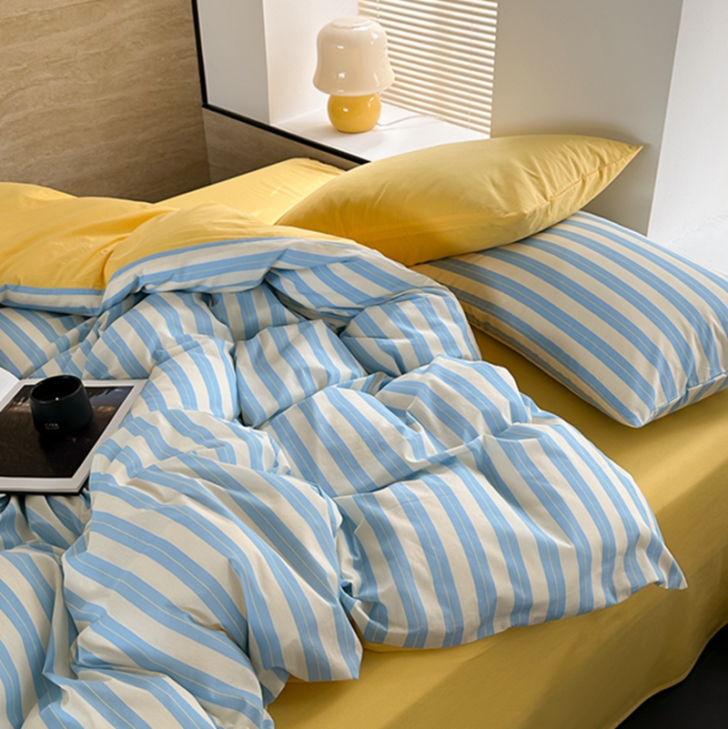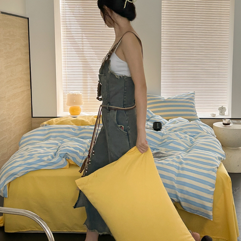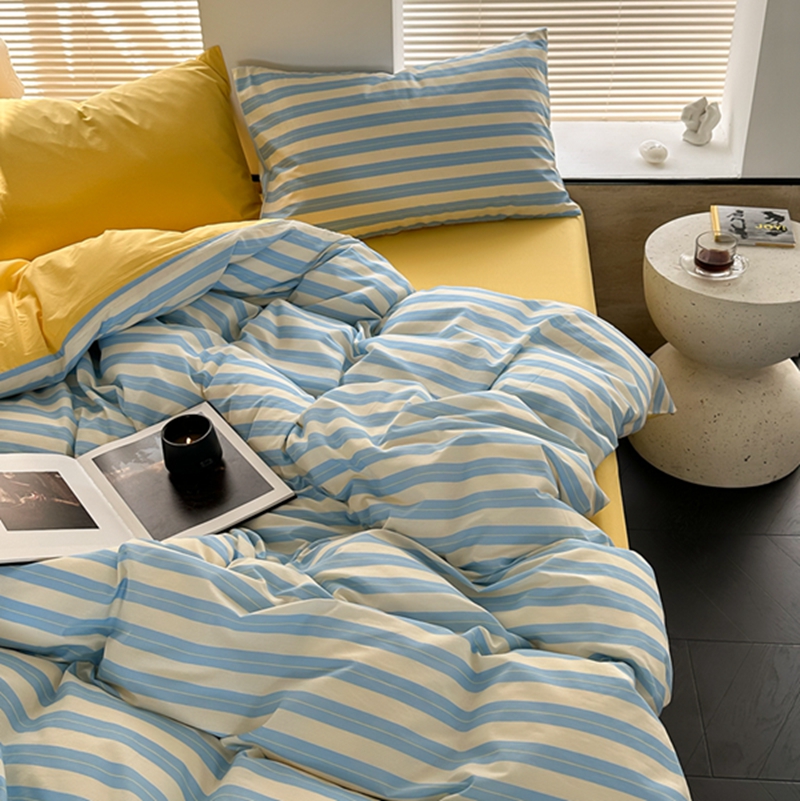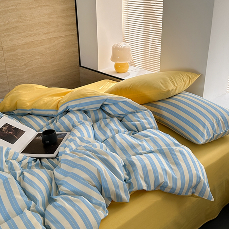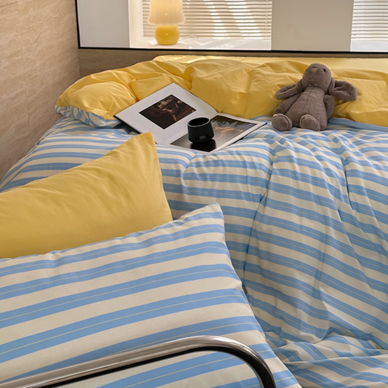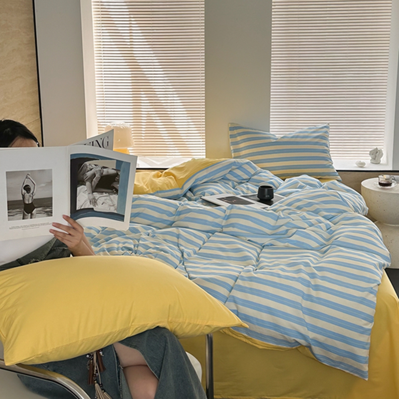 洋铭区(原狠狠爱) 2023新款全棉水洗棉多巴胺条纹四件套 多巴胺蓝细条
