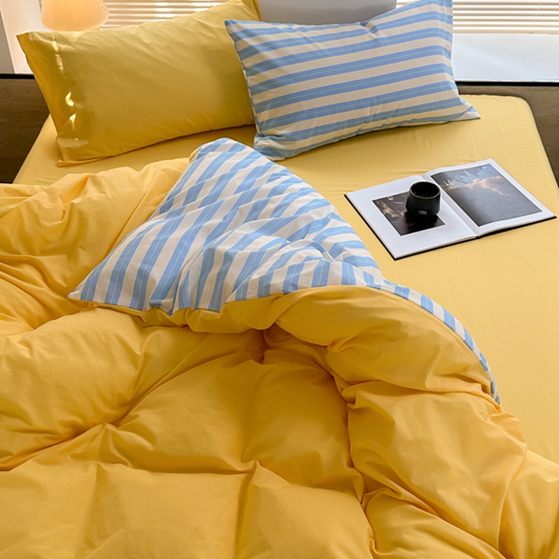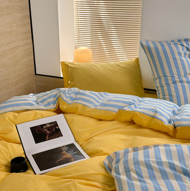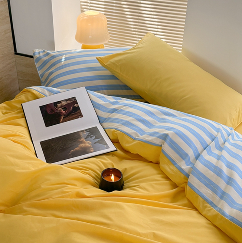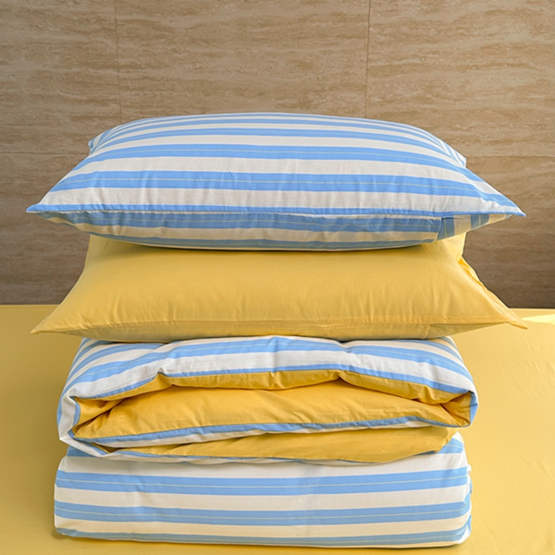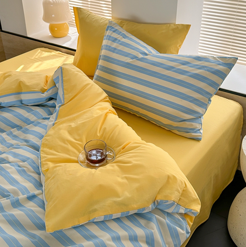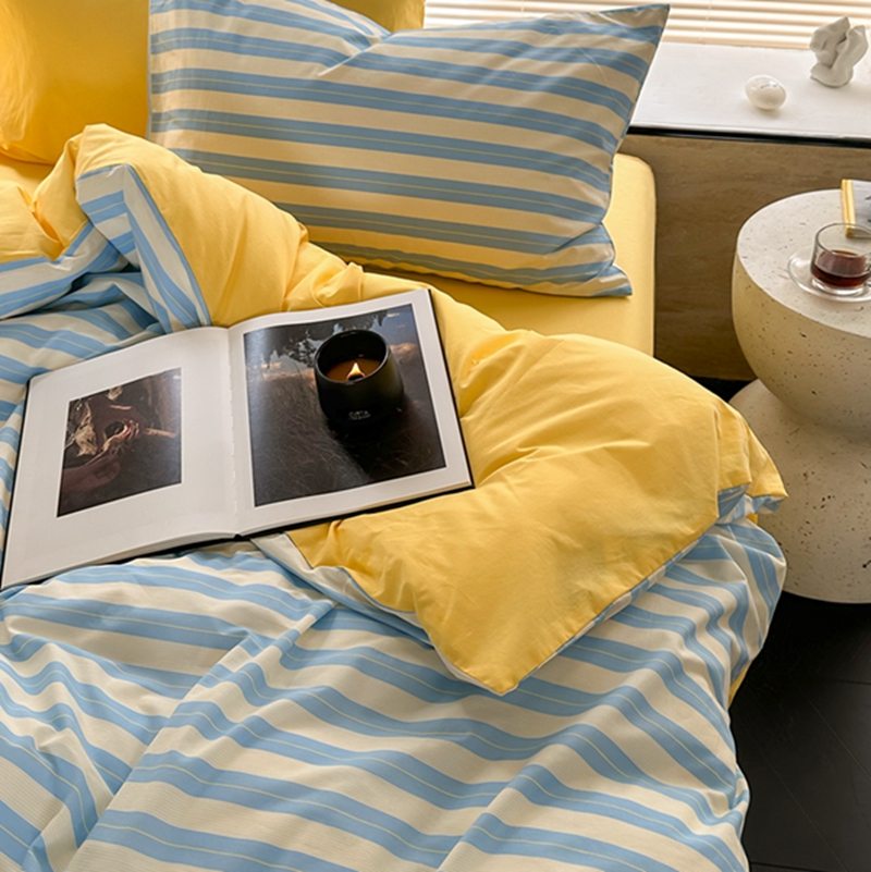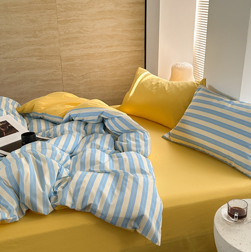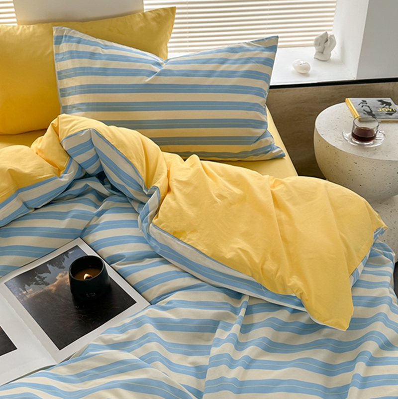 洋铭区(原狠狠爱) 2023新款全棉水洗棉多巴胺条纹四件套 多巴胺蓝细条