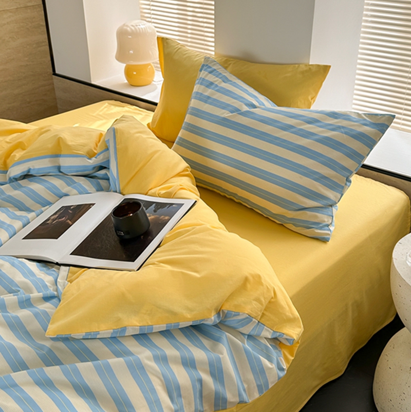 商品名称:洋铭区(原狠狠爱) 2023新款全棉水洗棉多巴胺条纹四件套 多巴胺蓝细条