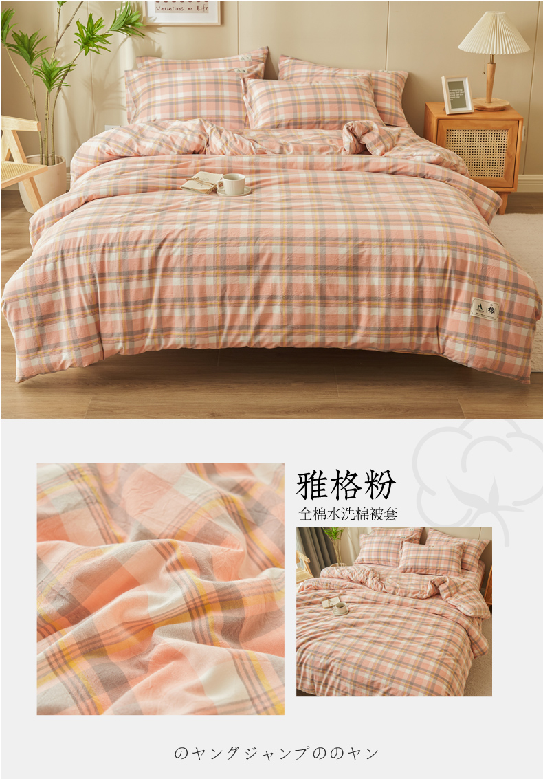 21度C 2024新款全棉色织水洗被套 雅格粉