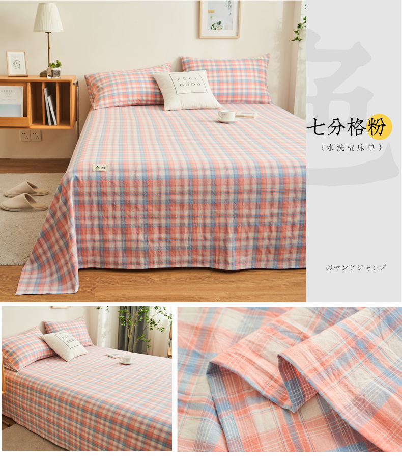 21度C 2024新款全棉色织水洗床单 七分格粉