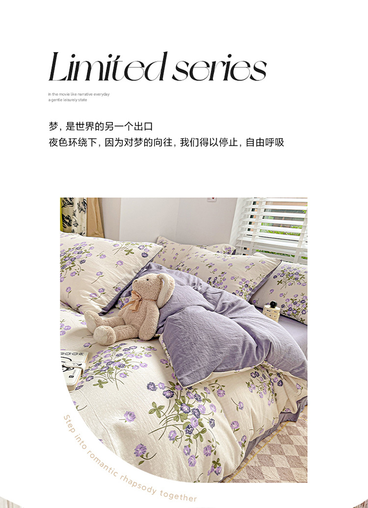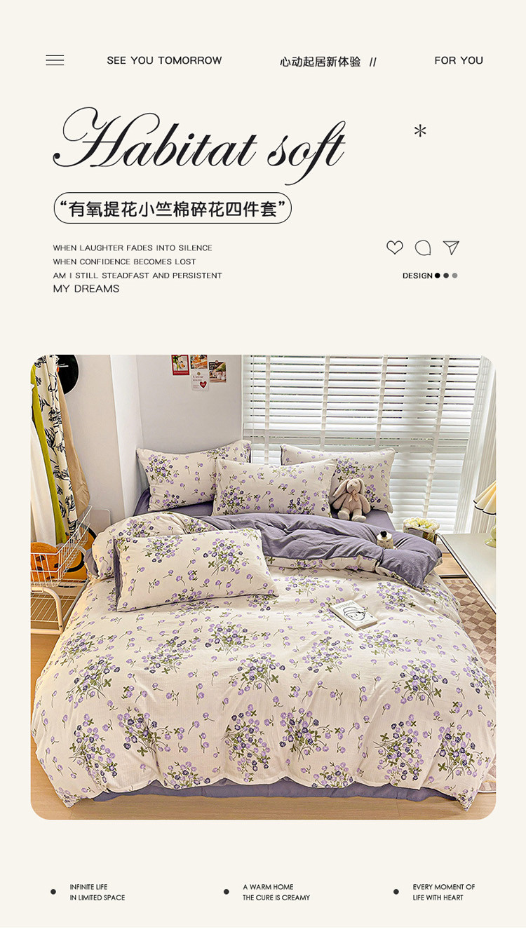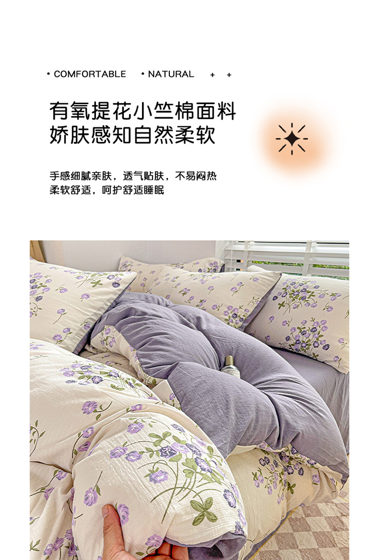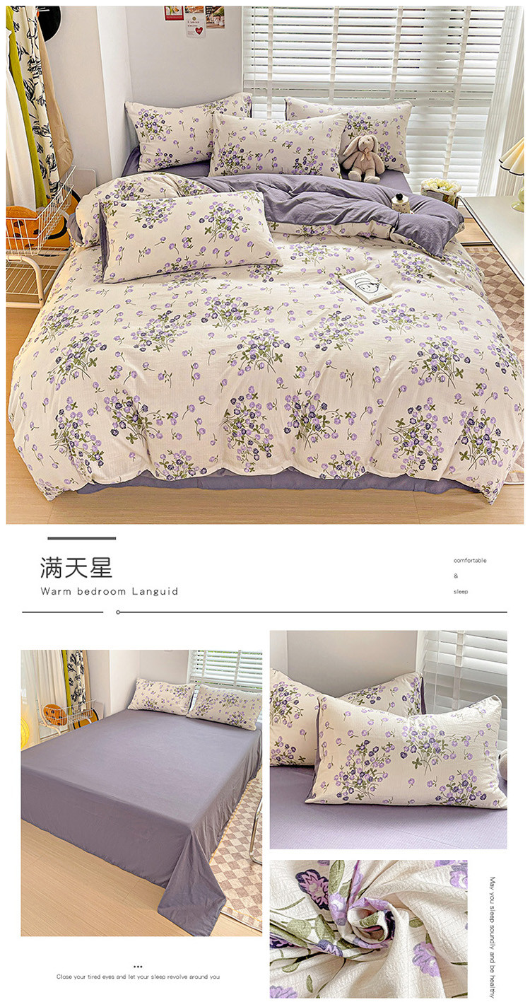 当前位置: 91家纺网 > 商品网购 > 床品套件 > 四件套 > 全棉普通四件套 > 暖芯优选2023新款超柔有氧小竺提花棉双层纱学生四件套 满天星