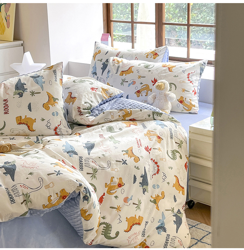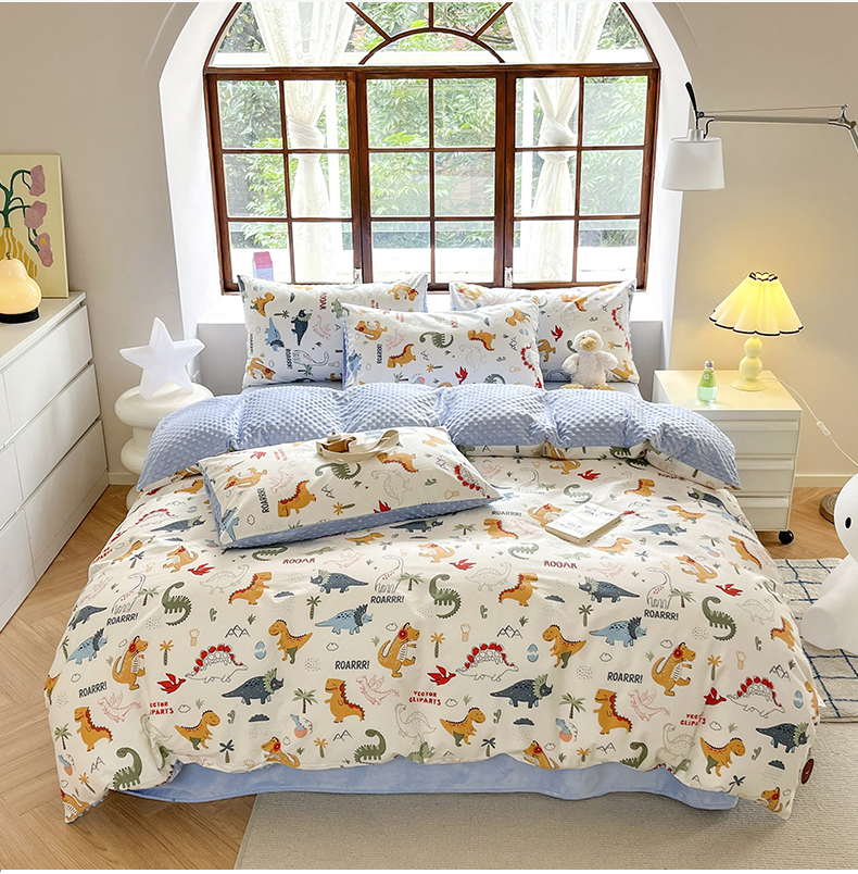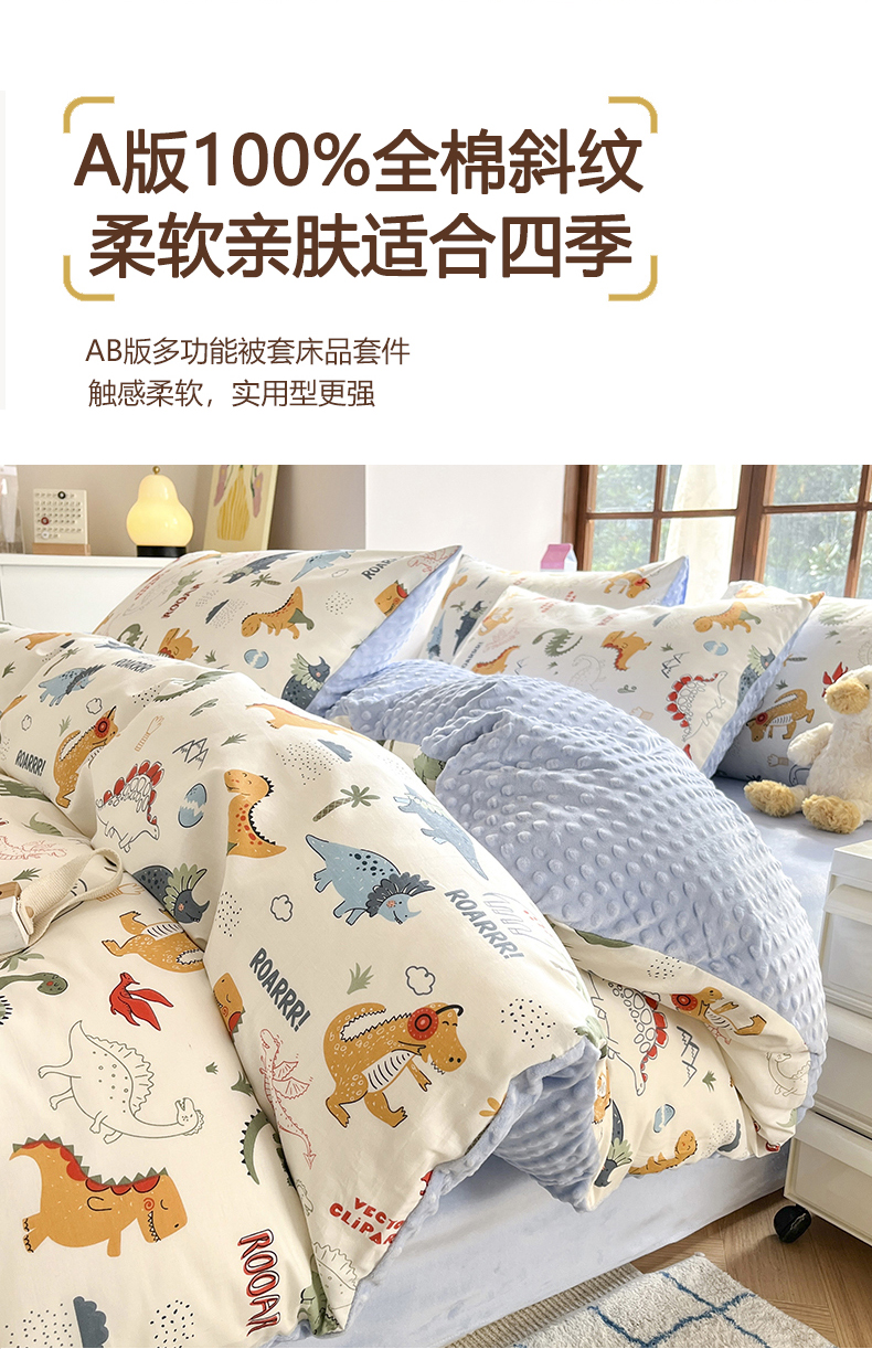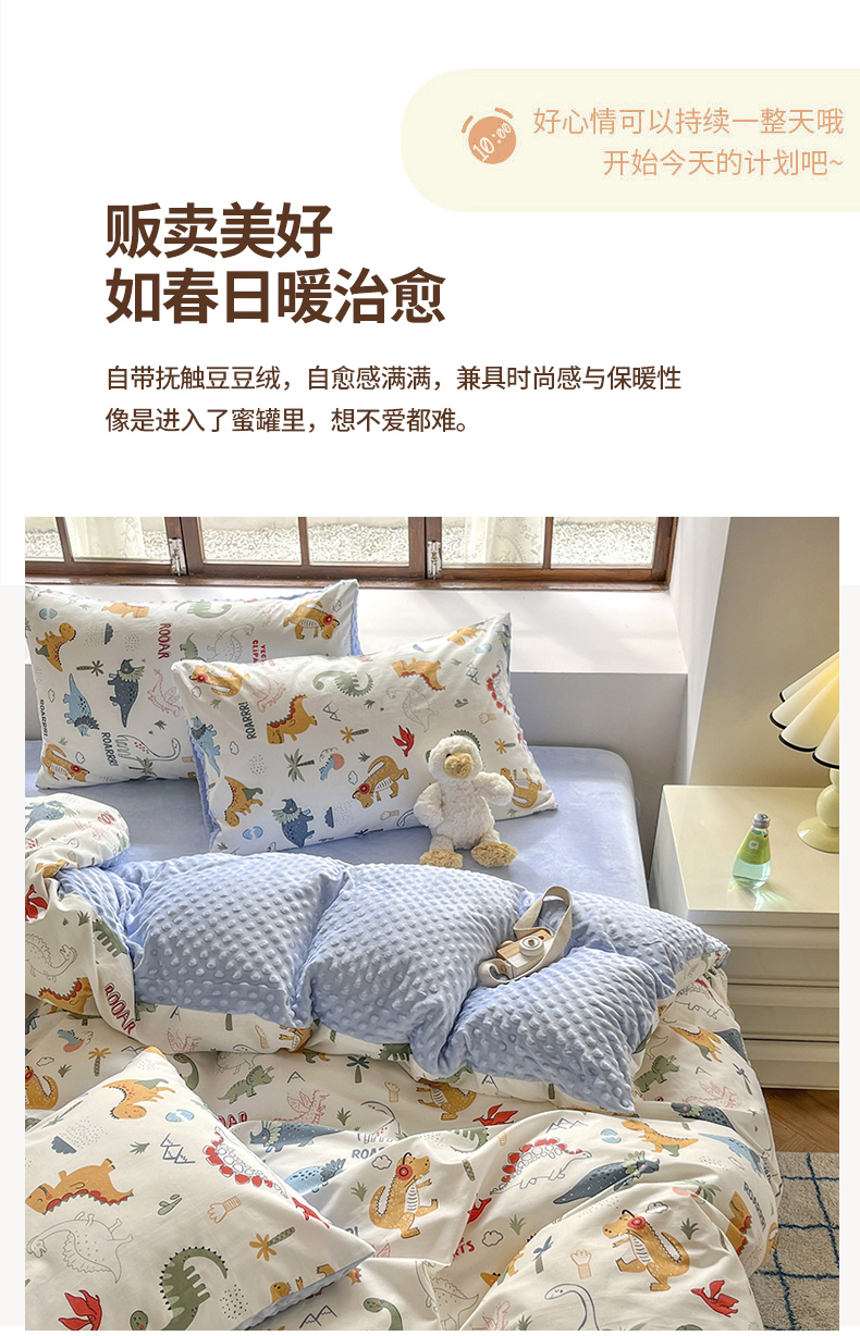 当前位置: 91家纺网 > 商品网购 > 床品套件 > 四件套 > 全棉普通四件套 > 麦伦家居 2023秋冬新品多功能床品全棉+豆豆绒四件套卡通小清新系列 蓝色小恐龙