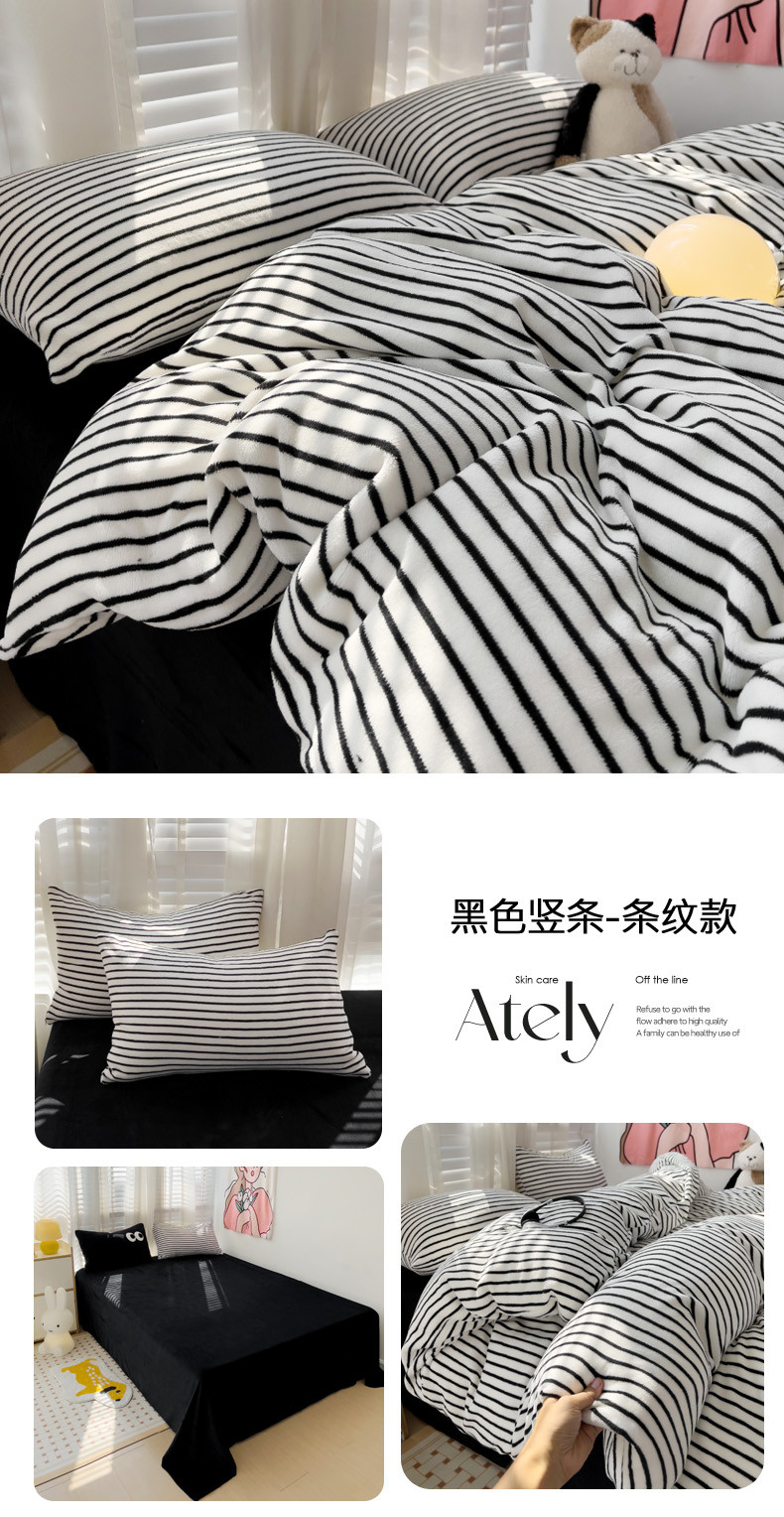 当前位置: 91家纺网 > 商品网购 > 床品套件 > 四件套 > 牛奶绒四件套 > 丽涵 2024秋冬新品牛奶绒博主风多巴胺条纹混搭保暖四件套 黑色竖条-条纹款