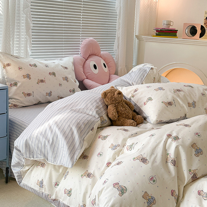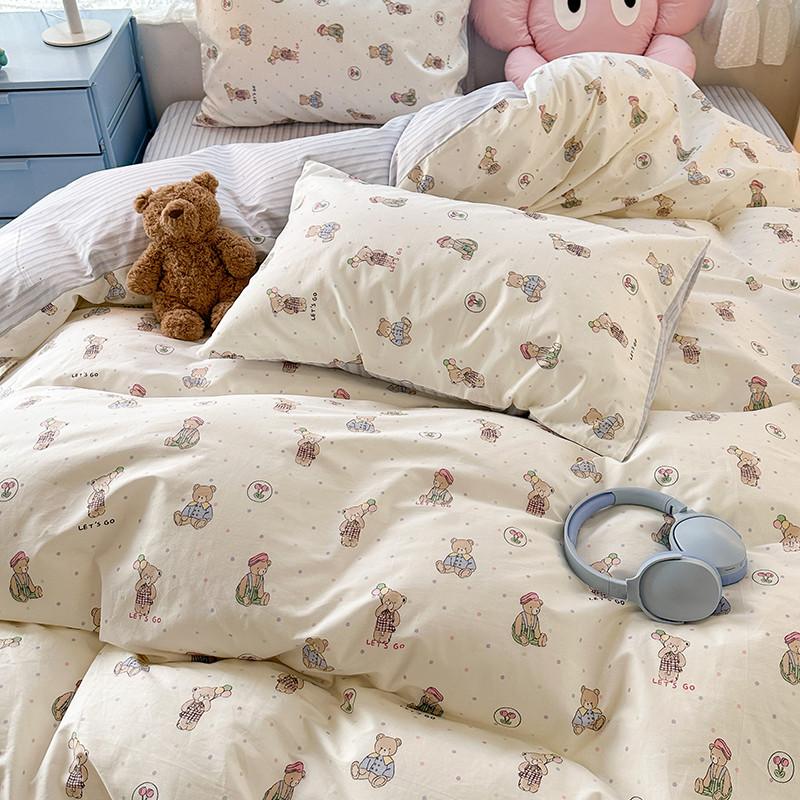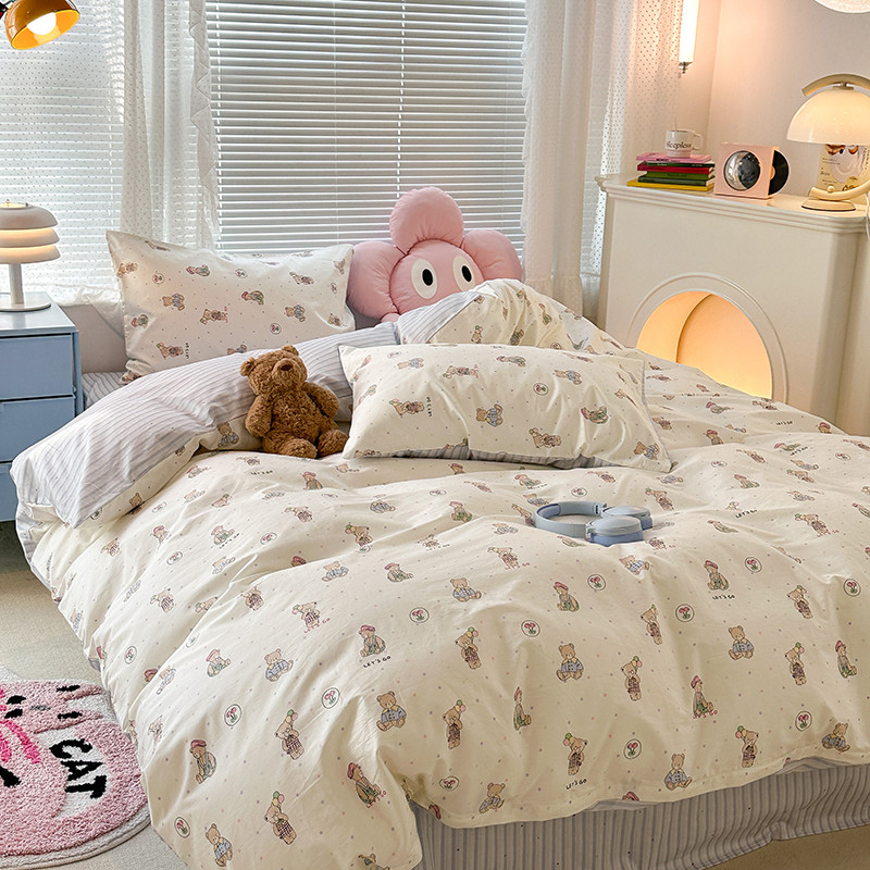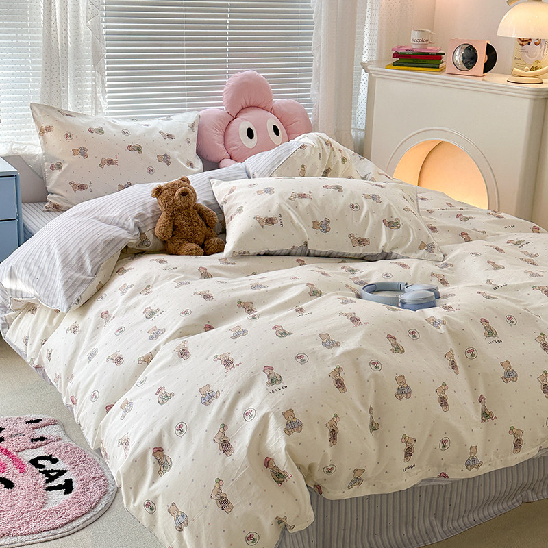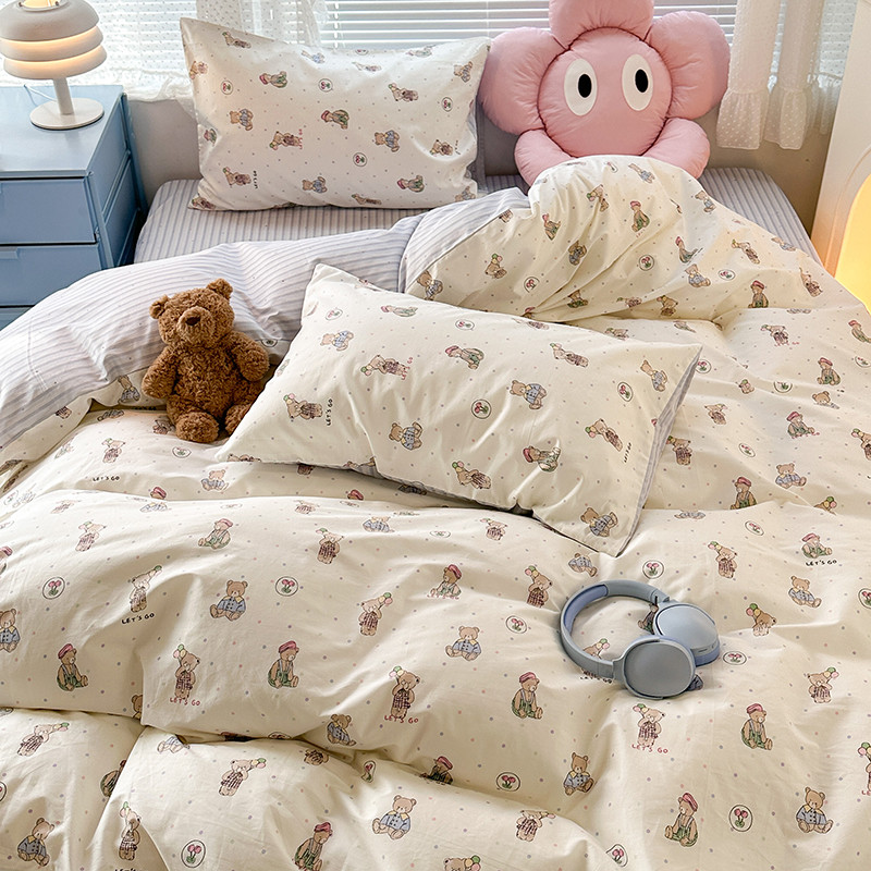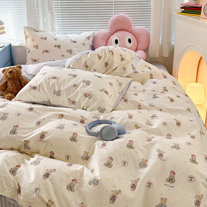 昔可 2023新款全棉卡通狗狗四件套 小熊日记