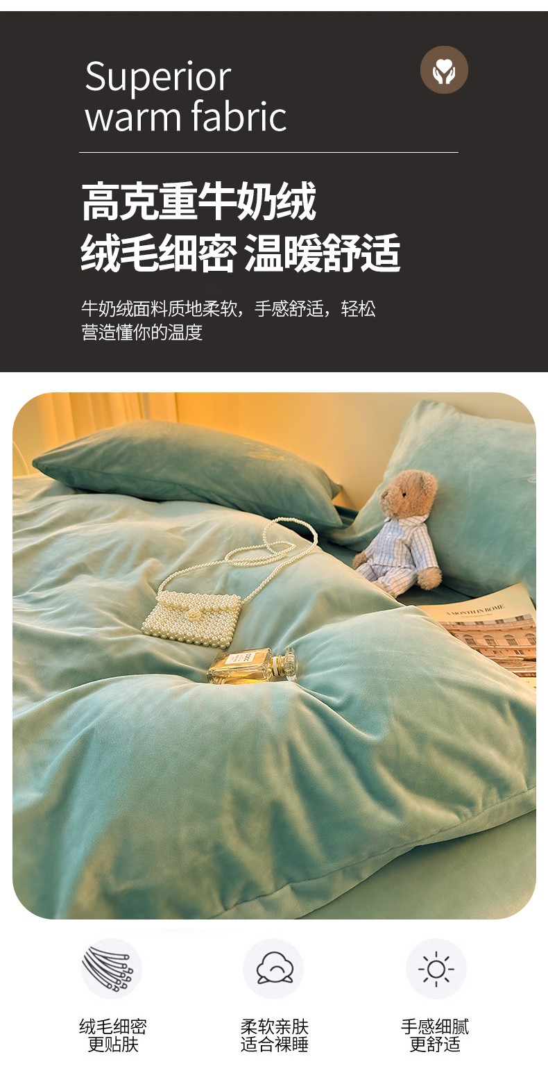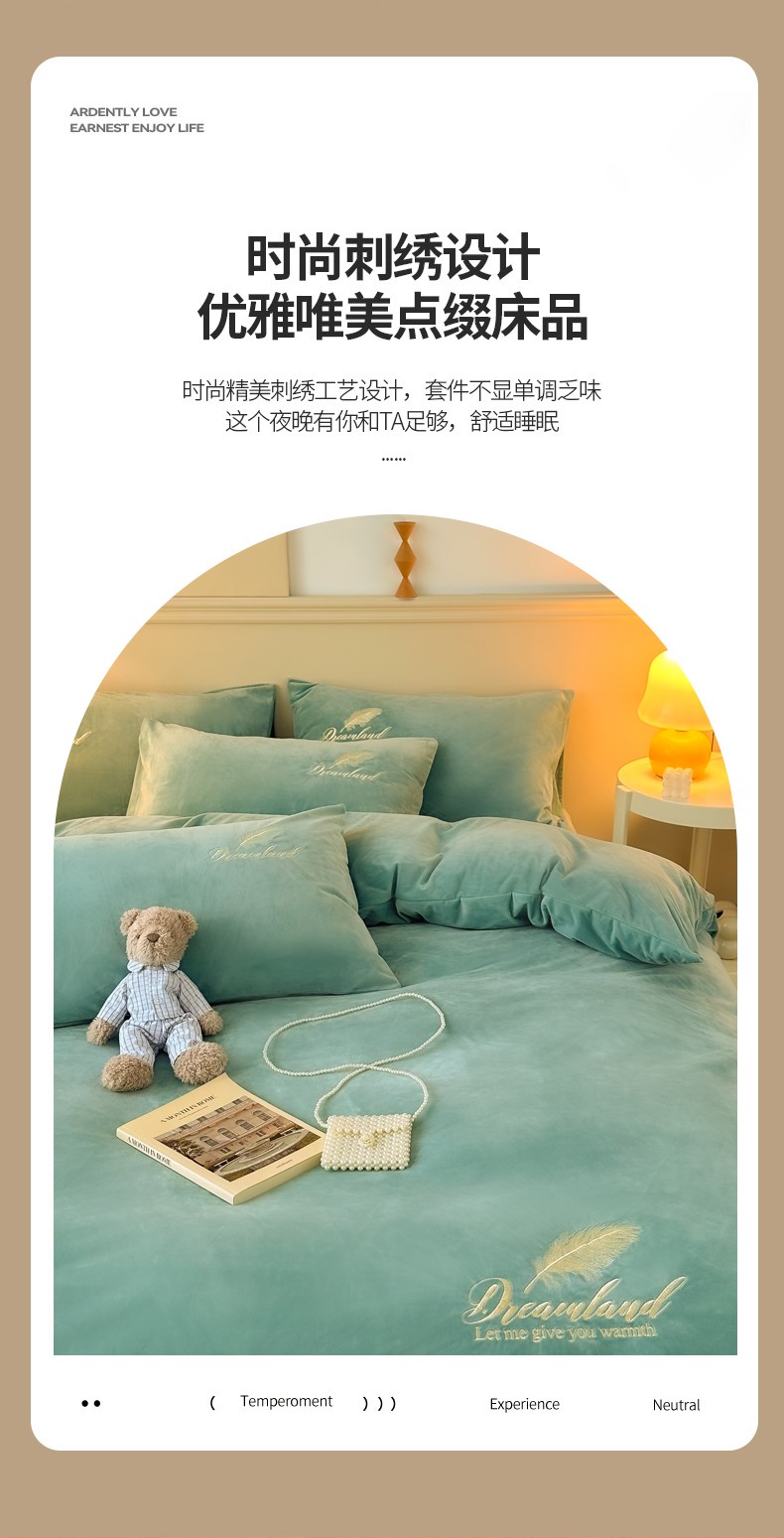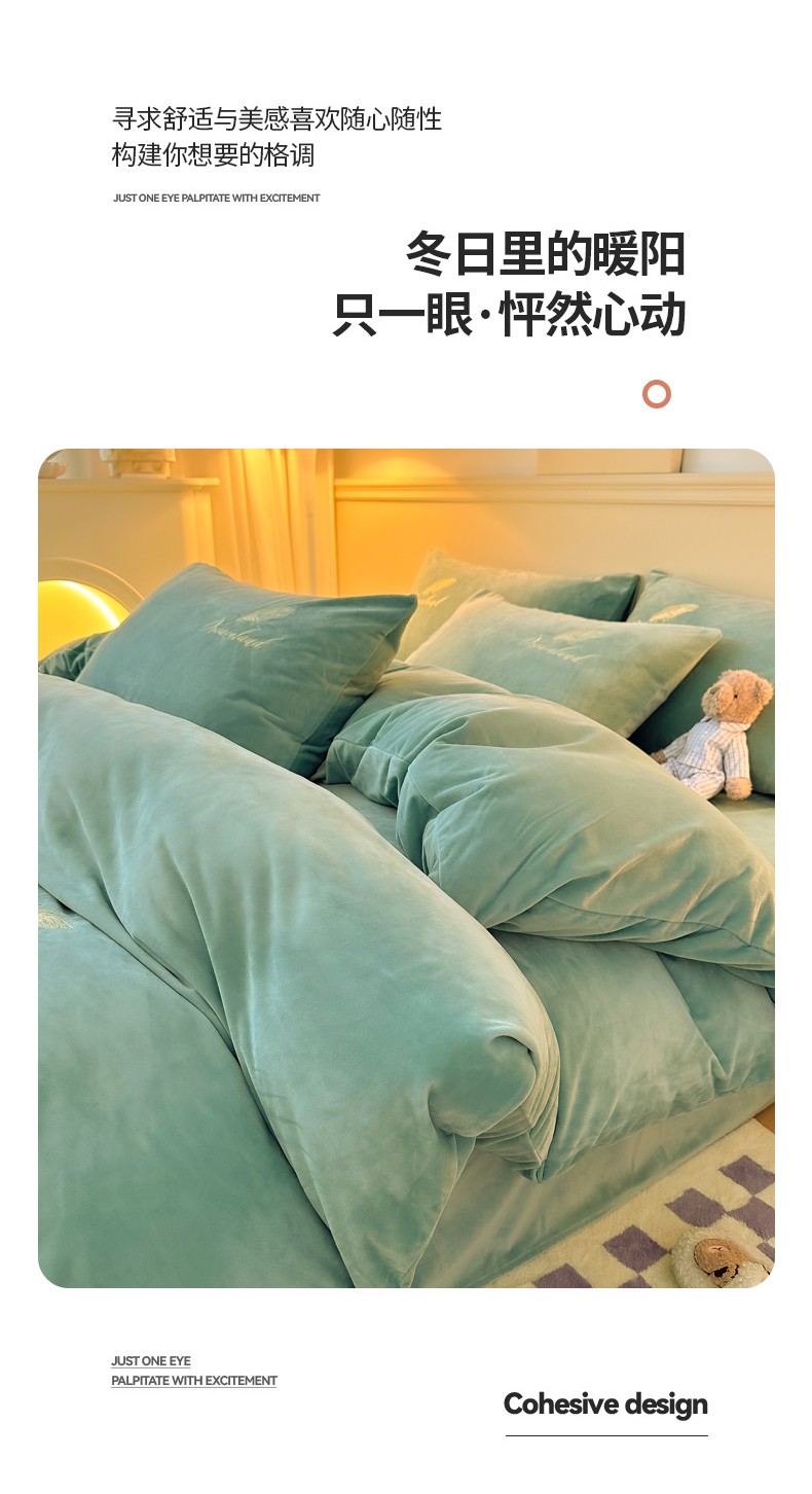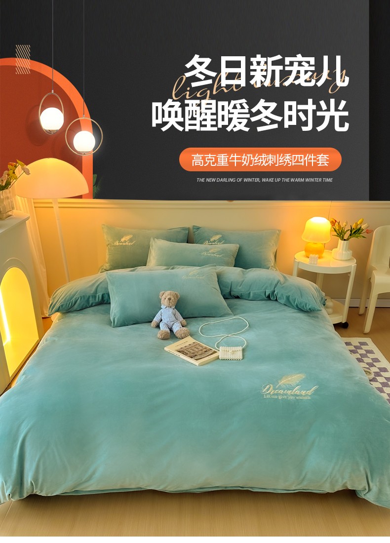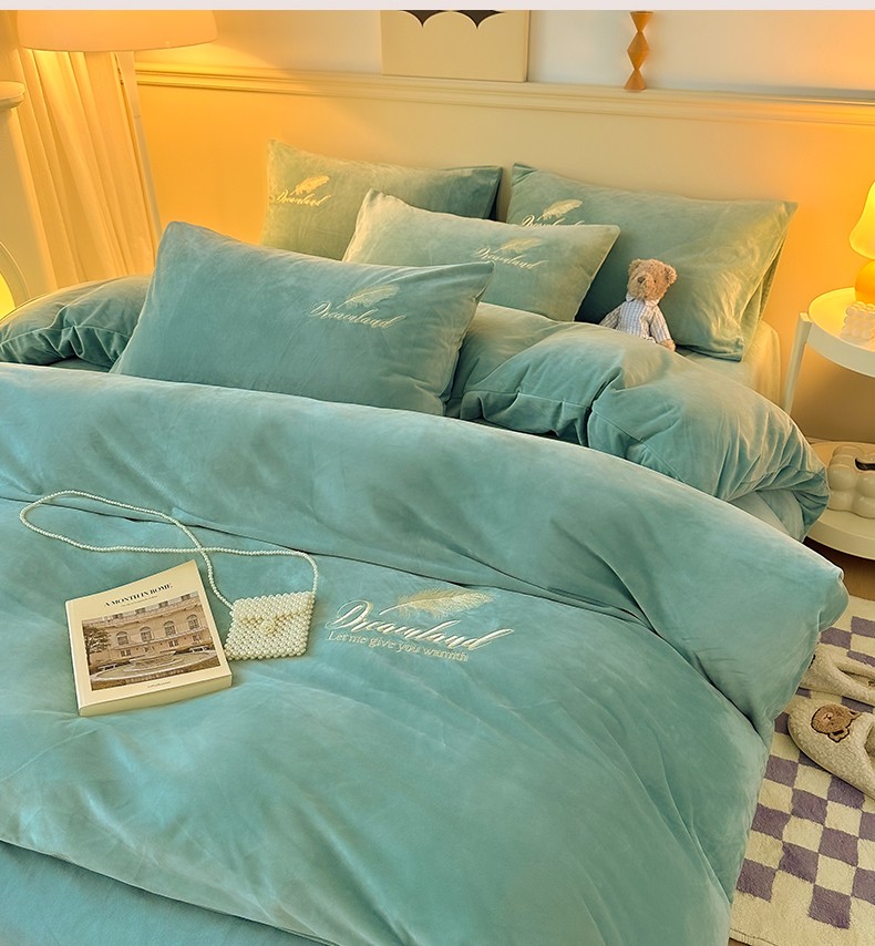当前位置: 91家纺网 > 商品网购 > 床品套件 > 四件套 > 牛奶绒四件套 > yyds网供 新款牛奶绒羽毛刺绣水晶绒简约床单款床笠款单品套件-场景二 羽毛-浅水绿