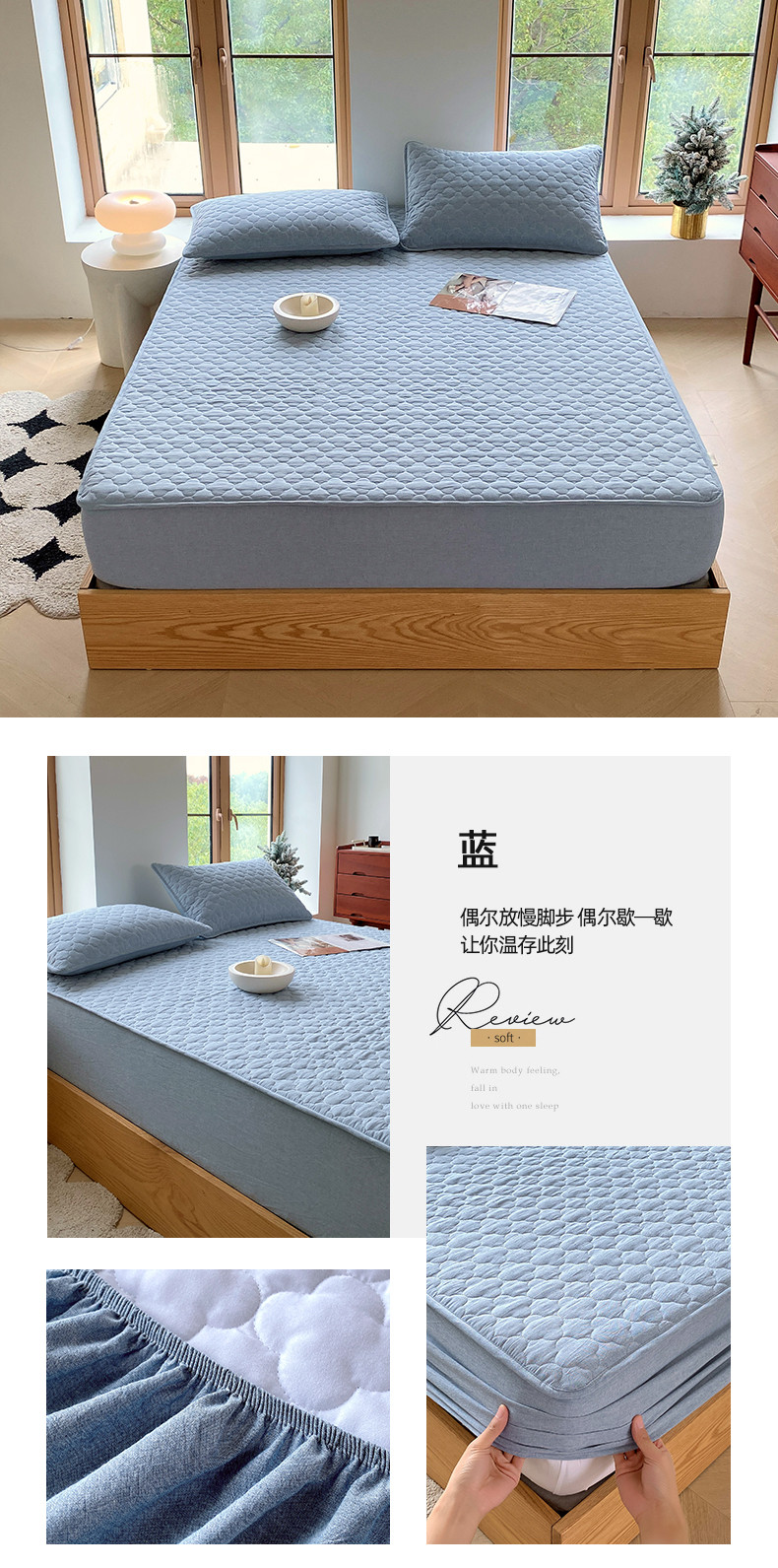 尊康家纺(原磊科) 2024新款全棉色织无印风大豆床笠 蓝