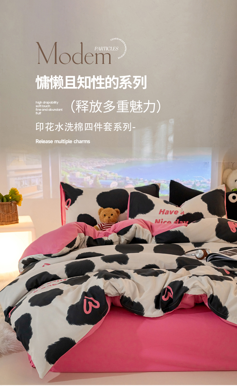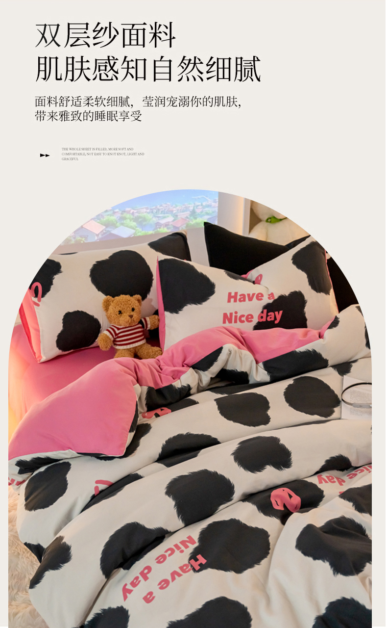 当前位置: 91家纺网 > 商品网购 > 床品套件 > 四件套 > 全棉普通四件套 > 韩秀家纺 2024新款超柔水洗棉双层纱大眼睛款印花四件套 绒朵