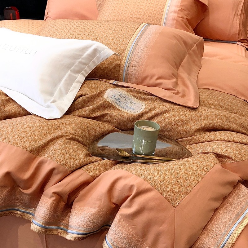 (总)太古汇家居 2025新款全棉提花奥黛丽系列四件套,奥黛丽-琥珀金,奥黛丽-山茶粉,奥黛丽-星耀蓝