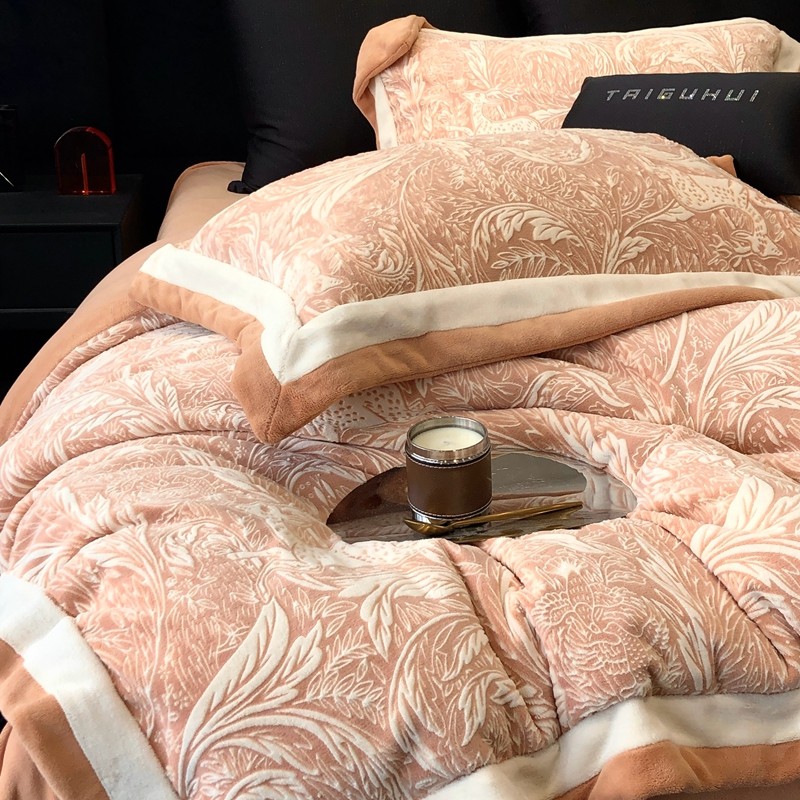 (总)太古汇家居 2025新款高克重牛奶绒四件套-繁花系列,繁花-琥珀杏,繁花-经典紫,繁花-慕斯粉,繁花-水雾蓝