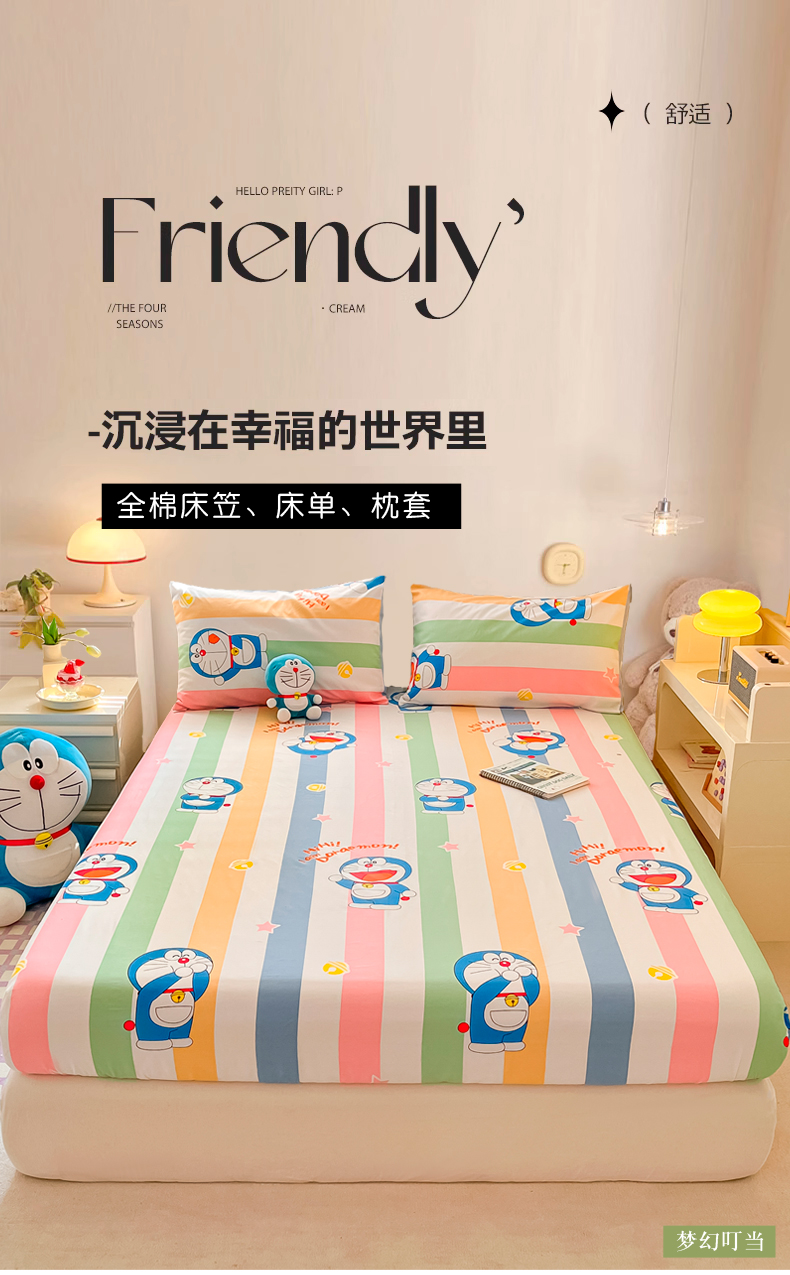 商品名称:桃子家居 2024新款哆啦A梦叮当猫纯棉单品单床笠 单品-梦幻叮当