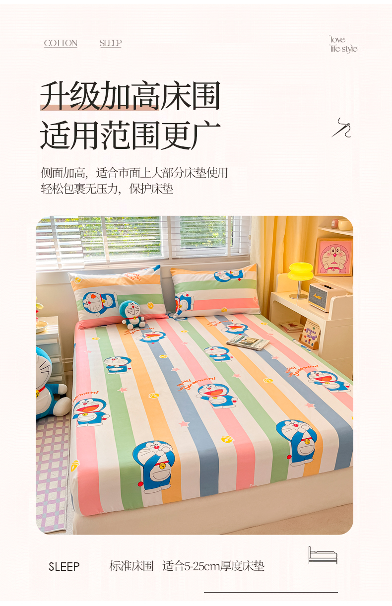 桃子家居 2024新款哆啦A梦叮当猫纯棉单品单床笠 单品-梦幻叮当